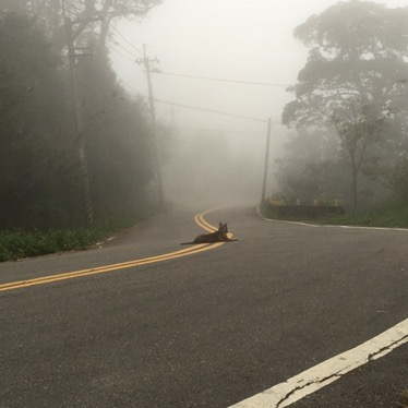 Here she is having returned to the starting point – almost as if she’s waiting for her next customer. Taiwan’s street dogs and farm dogs have a shockingly casual attitude towards traffic, this dog was sitting right on a sharp bend and on our way down we encountered many more ambling wherever they wished, sharing the roads with cars.