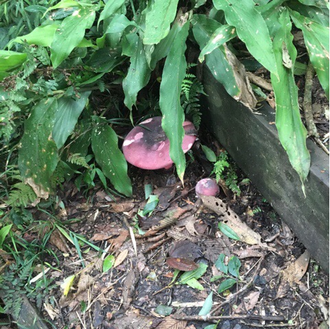 We found this large red mushroom lurking under some leaves to the side of the trail, making the most of all the decaying leaf matter.