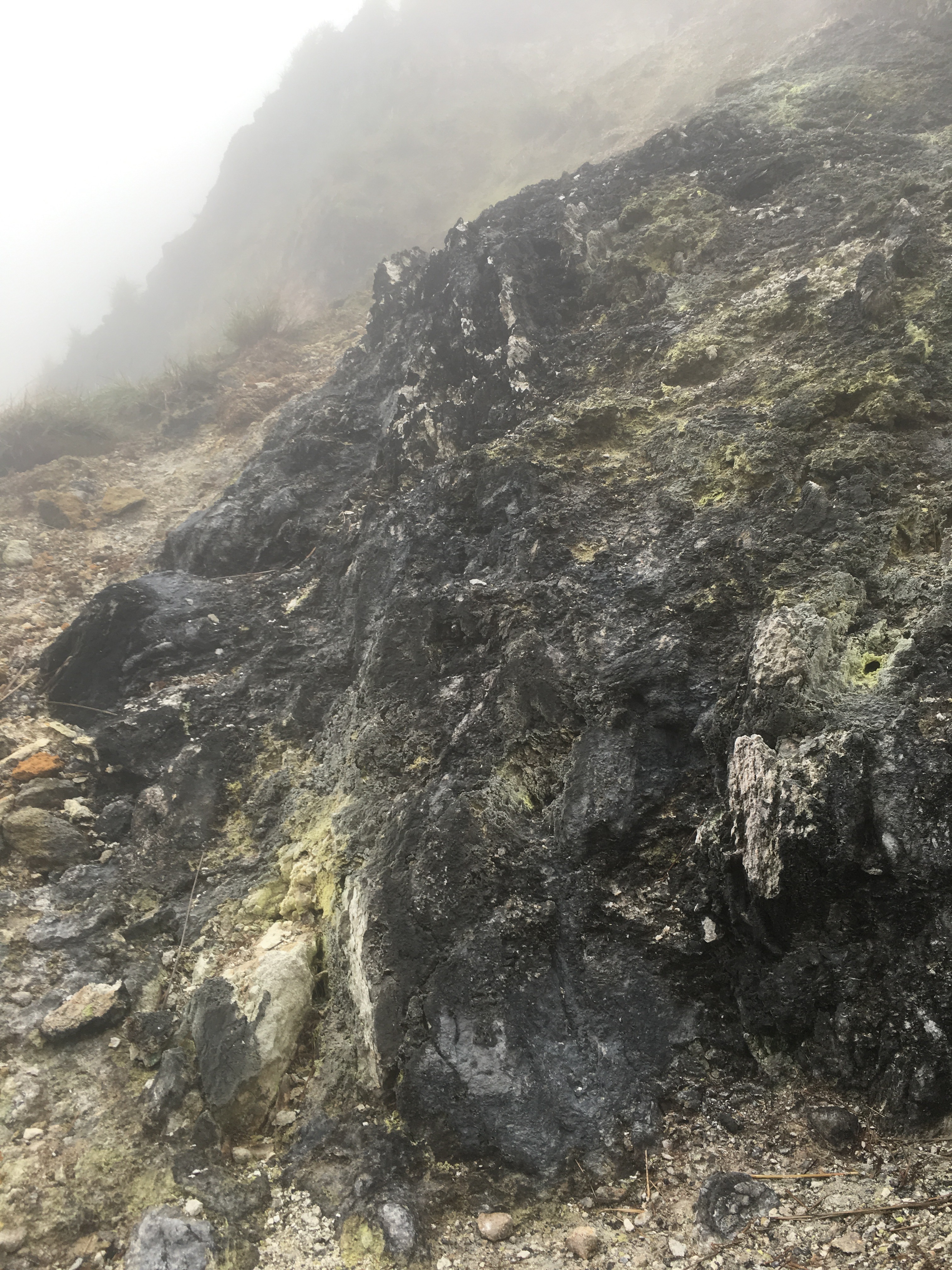 All the way up the north face there are fumeroles, (steam vents), to either side emitting a heavy, sulphur smell and wafts of hot air. The blackened/sickly-yellow land around these patches of steaming earth definitely add to the atmosphere – it seems like you’re walking through the aftermath of a terrible event, (which it kind of is when you remember that it’s residual volcanic heat).