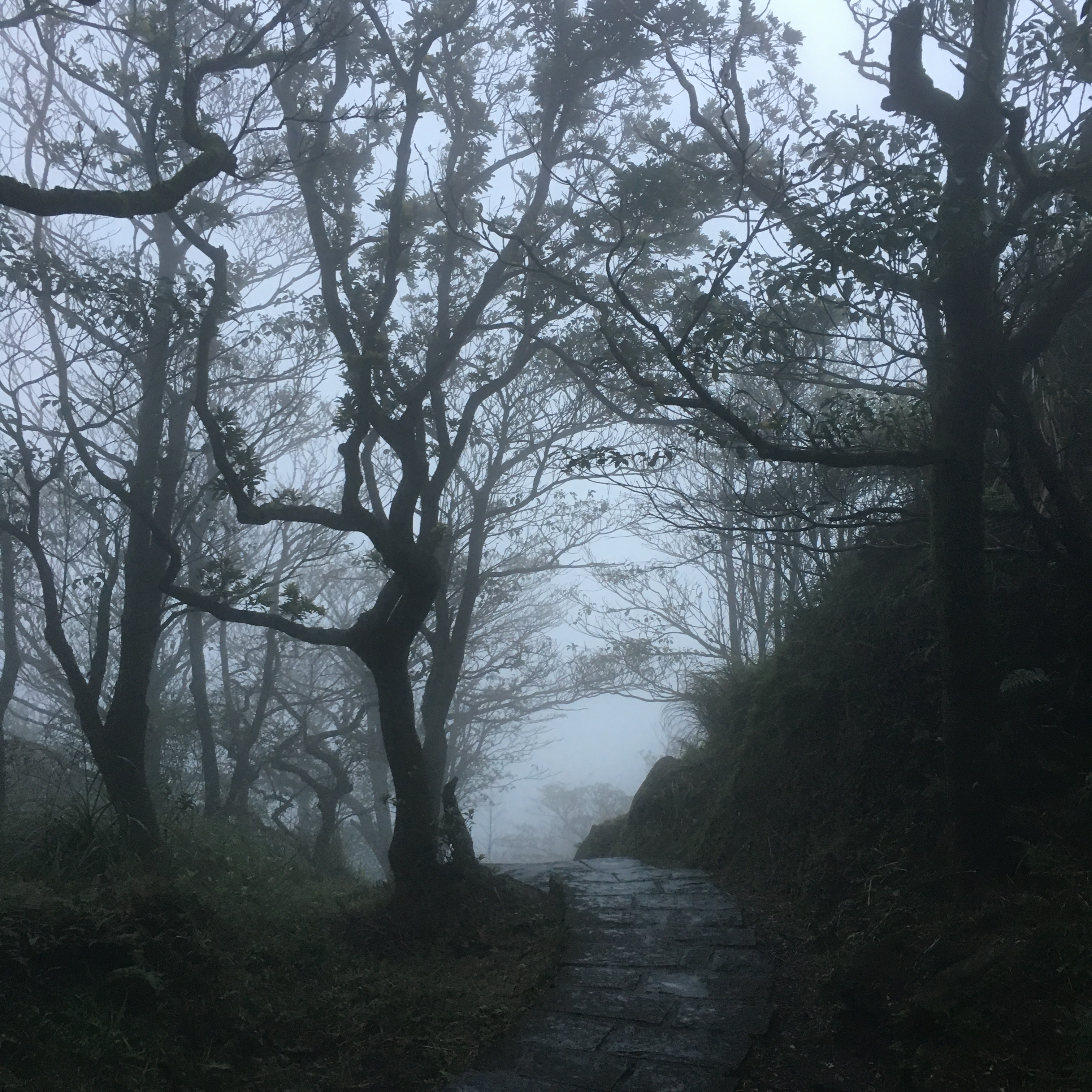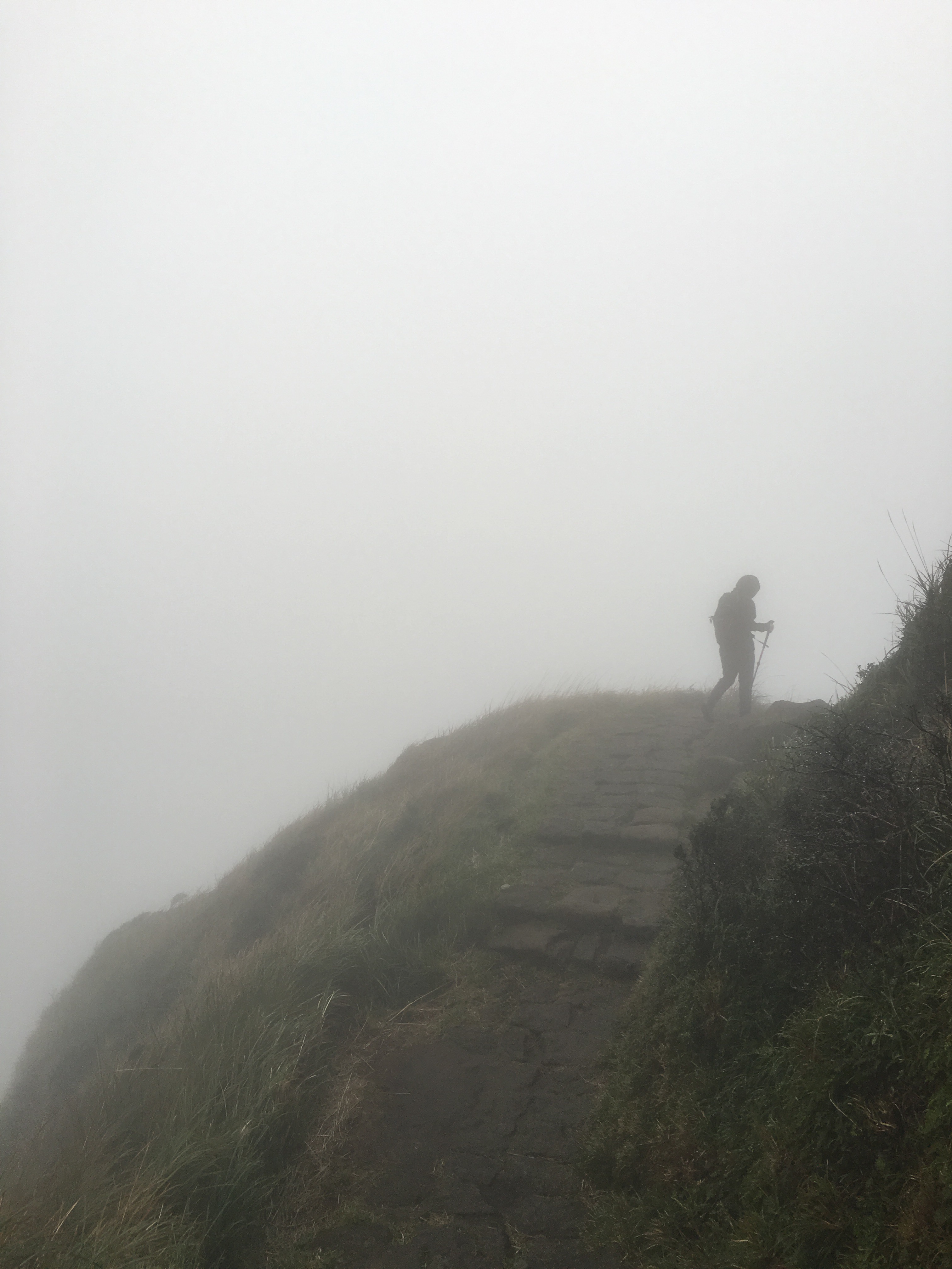 The fog was thick on the way up, the path revealed itself gradually as we walked.