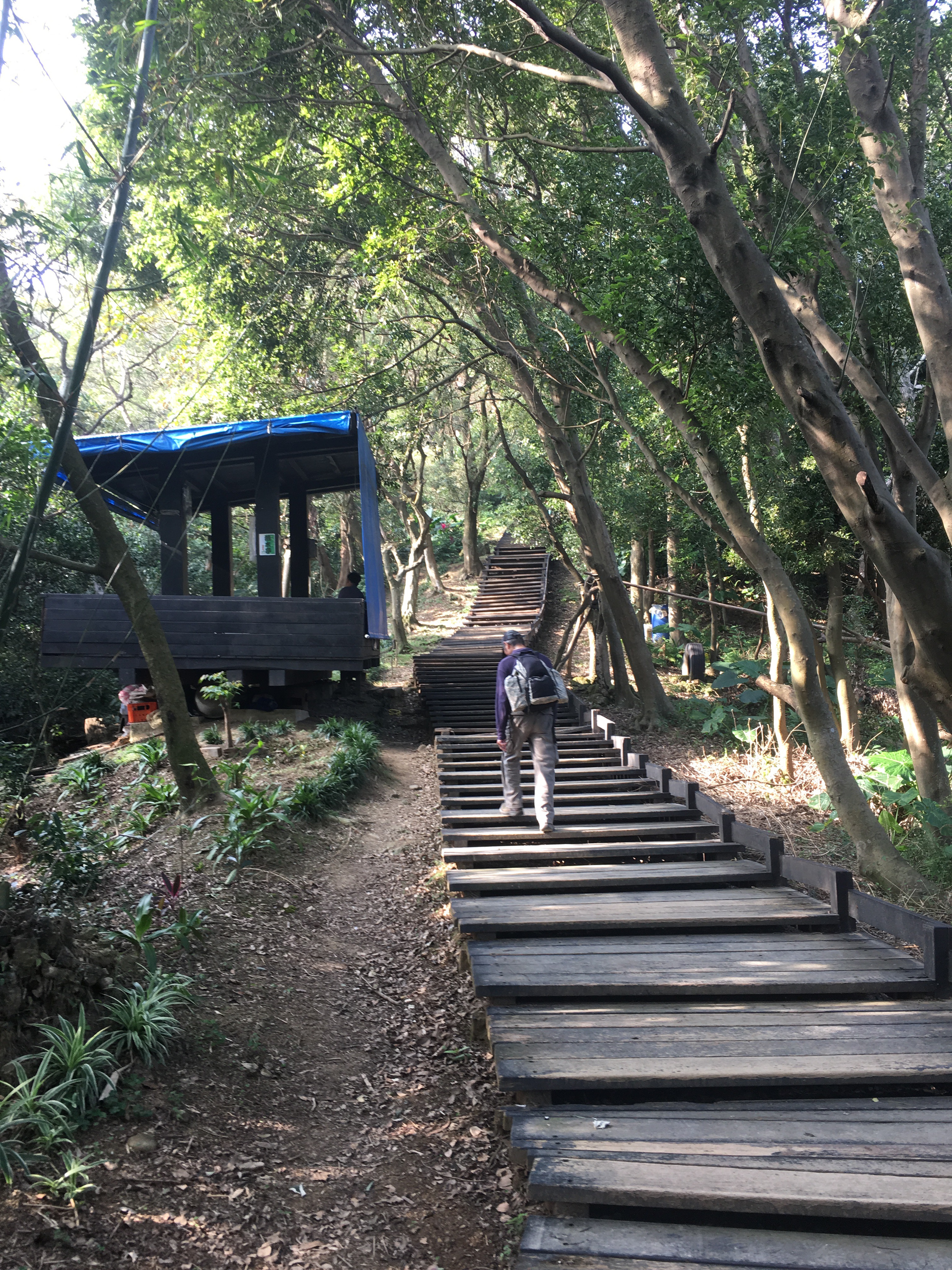 The path goes up and down steps, the whole way the environment feels quite cultivated, it’s clear that someone maintains the plants. At this post and others we continued straight on following signs for Qilong Ridge.
