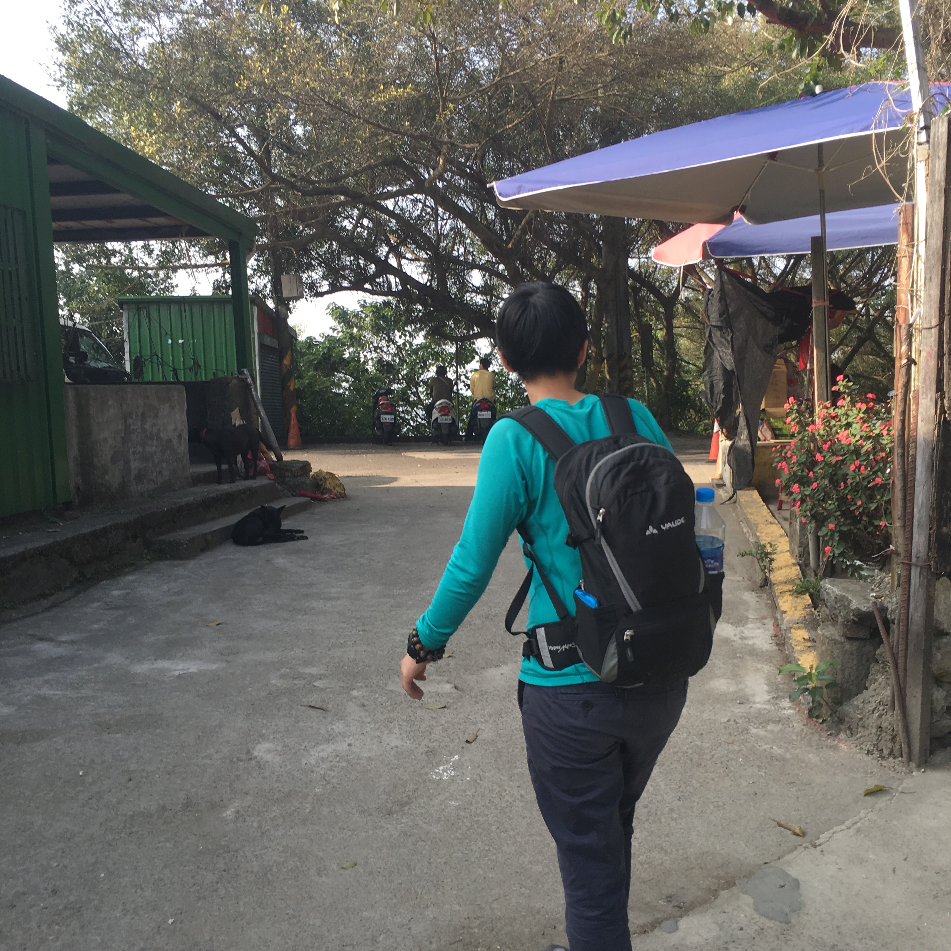 After paying we headed between the buildings. At the junction there’s a temple on the right but we turned left and went up hill for a bit instead.