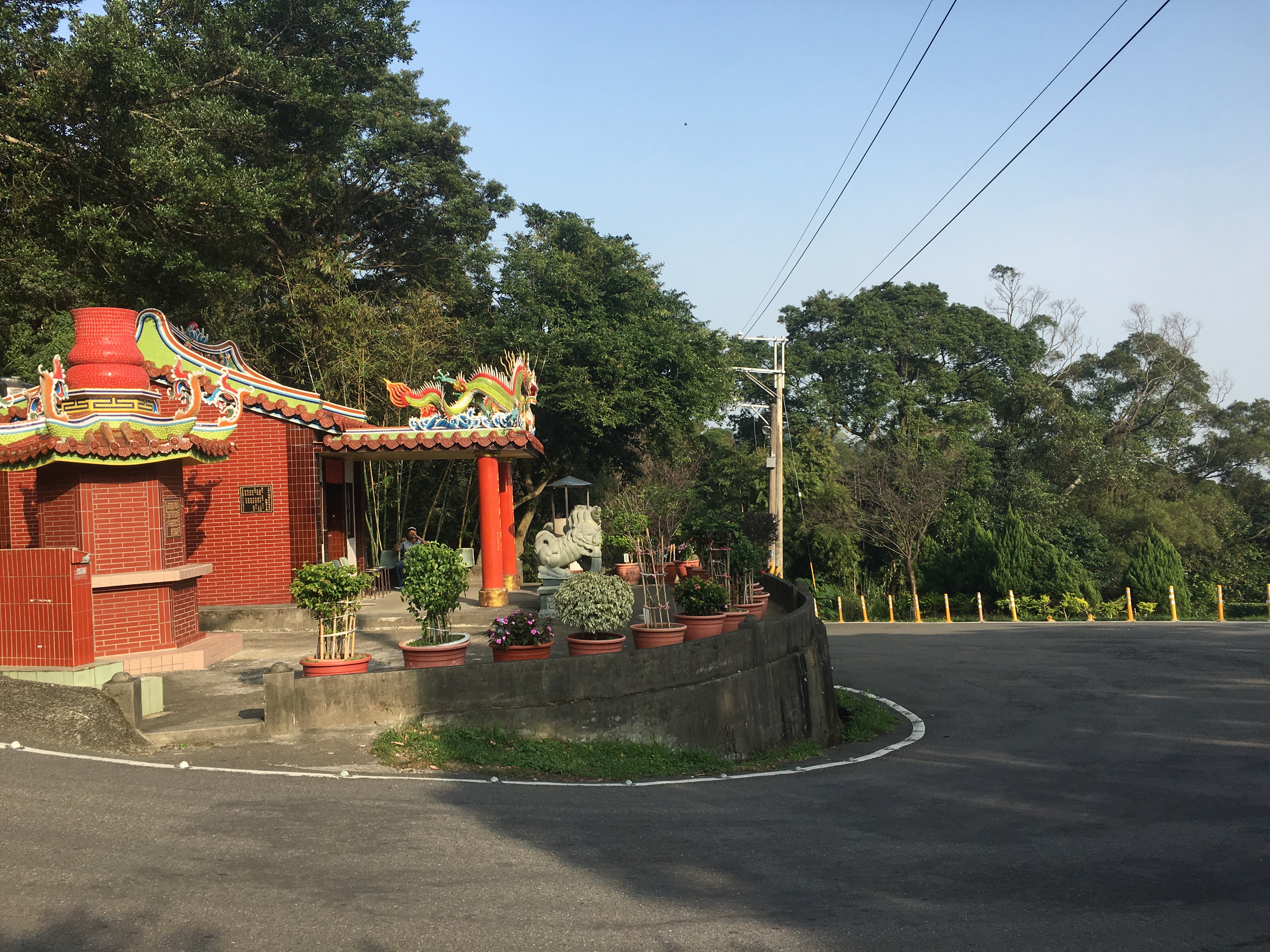 The road does a tight curve around another temple. (This place has a lot of temples, even by Taiwan standards.)