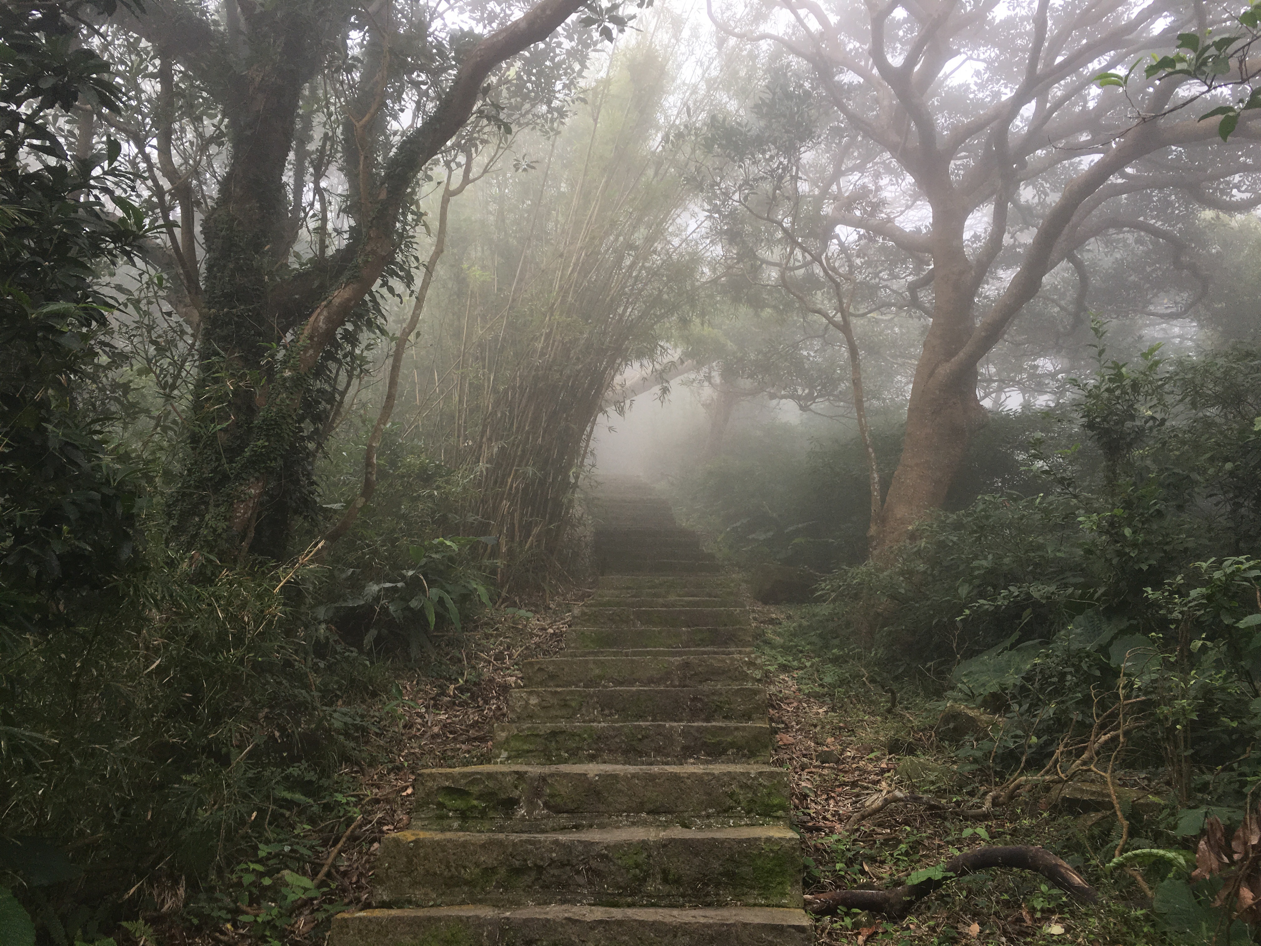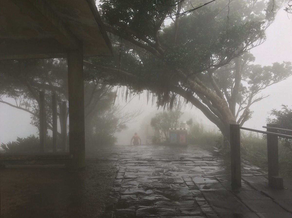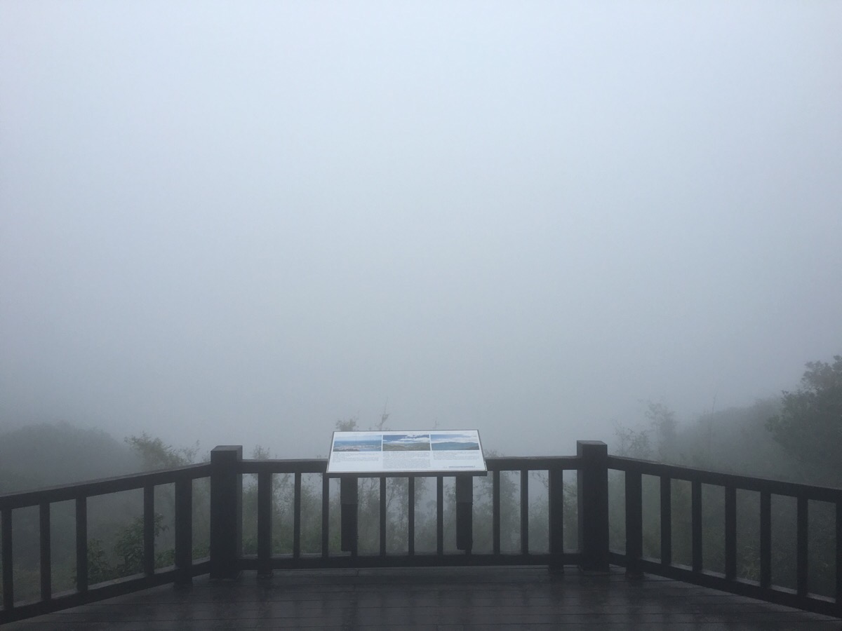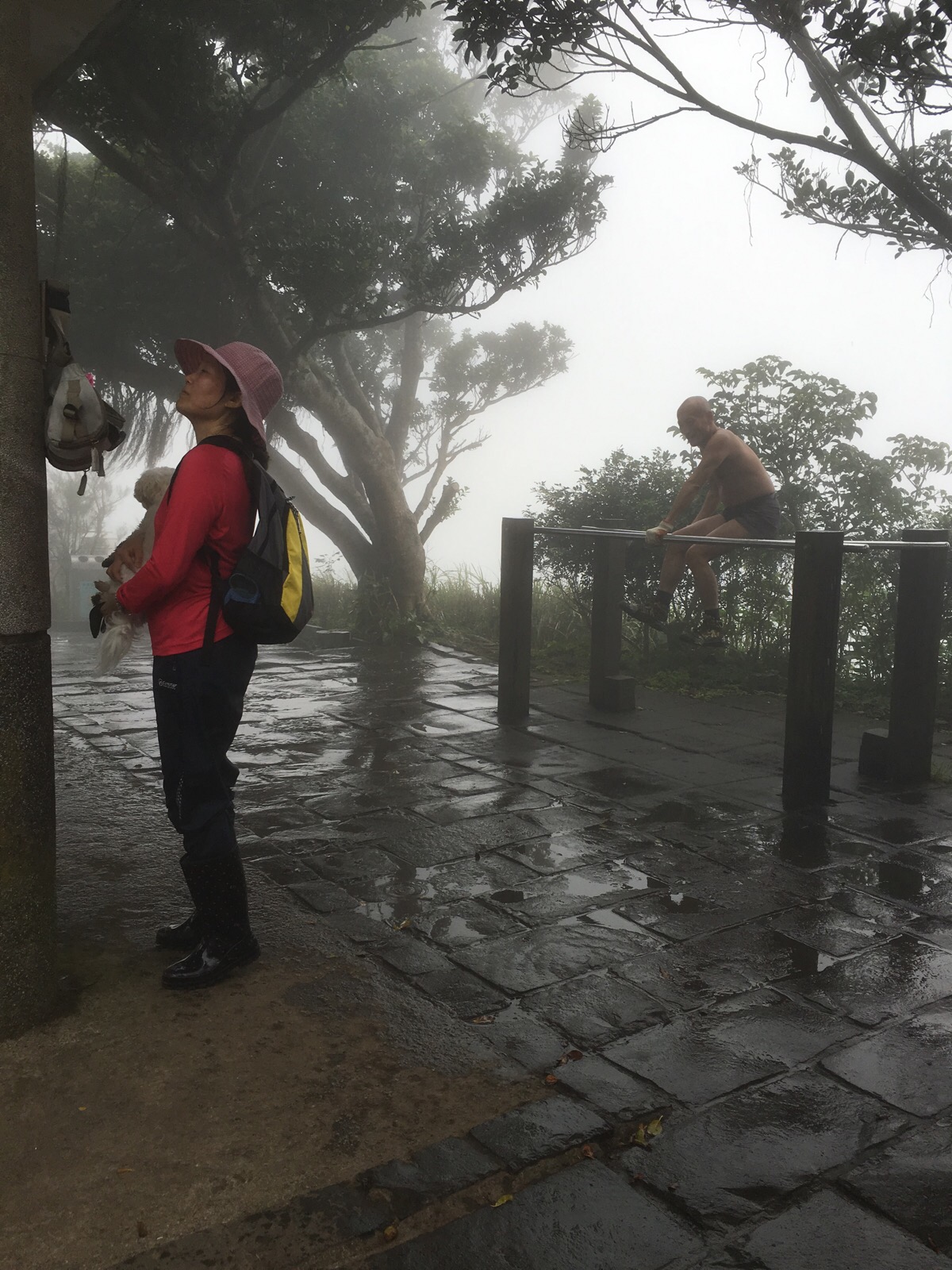 We arrived at the first viewing platform to be greeted with an impressive curtain of white. The information board helpfully tells visitors about all the things they might see if the whole place wasn’t squatted on by fat clouds: Danshui Town, (once a major harbour and the place at which the Danshui River meets the Taiwan Strait), Hongshulin, (a red mangrove forest nature reserve and Taiwan’s largest kandelia forest), and also the Mount Datun volcanic area, (described as containing ‘the most complete traces of volcanic activity in Taiwan today’ – I’m not sure if that’s technical language I don’t get or if it’s a Taiwan-English special creation).