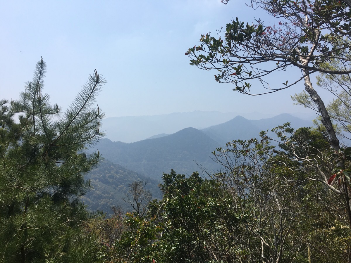 Eight minutes after leaving the junction we reached another junction. This time the signs were clearer. Left up to dahun shan, straight on to lidong shan and right to a gap in the trees with a good view. (You don’t need to go up to dahun shan, you can keep going straight to take a brief shortcut – we came back via this shorter route indicated by the red arrow.)