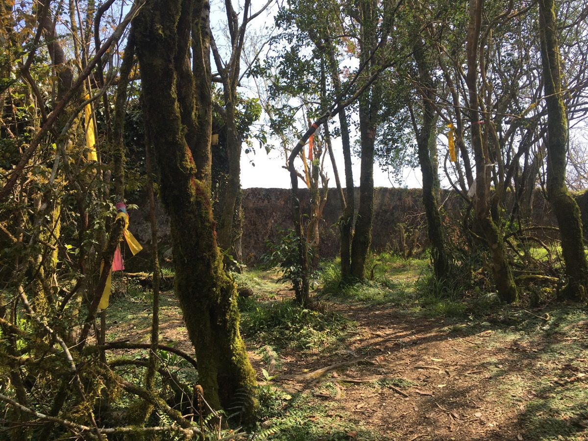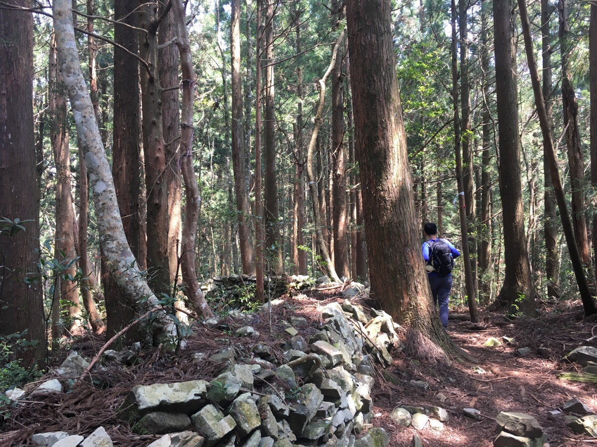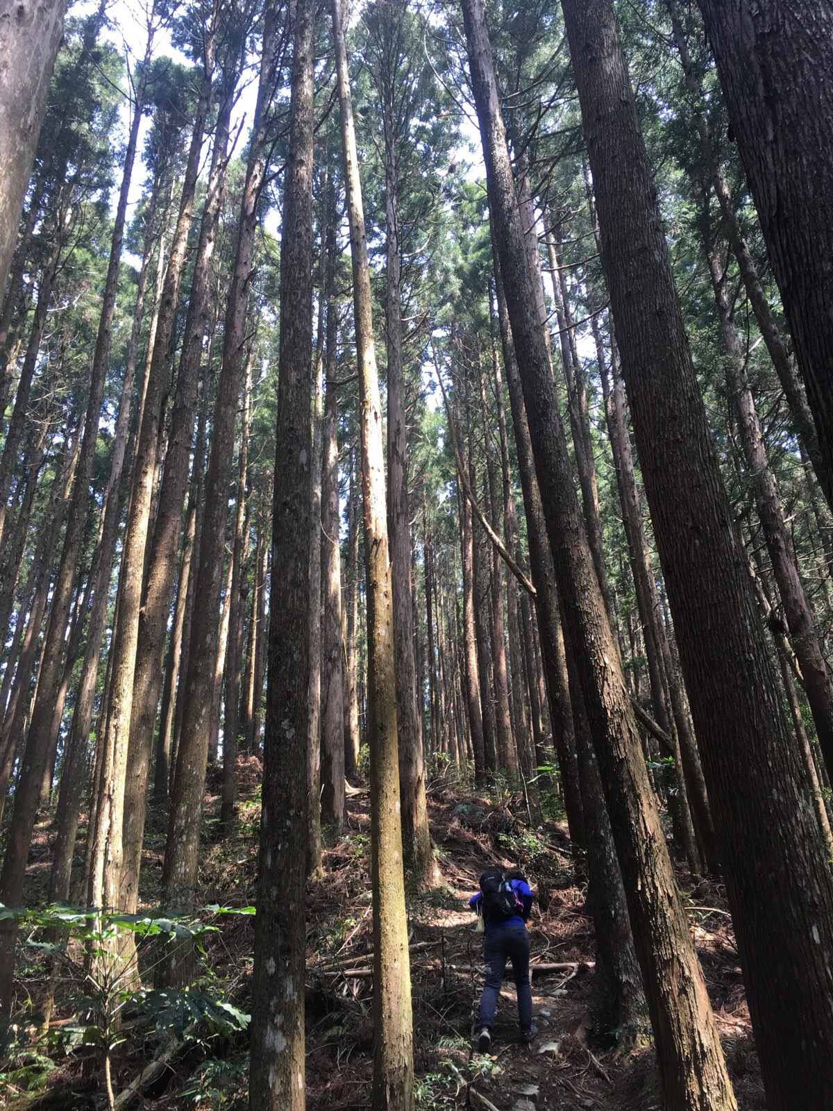 Almost immediately after leaving the clearing we found ourselves surrounded by signs of this place’s history. Dry stone walls snaked through towering Japanese cypress trees, both signs that the area had previously been occupied.