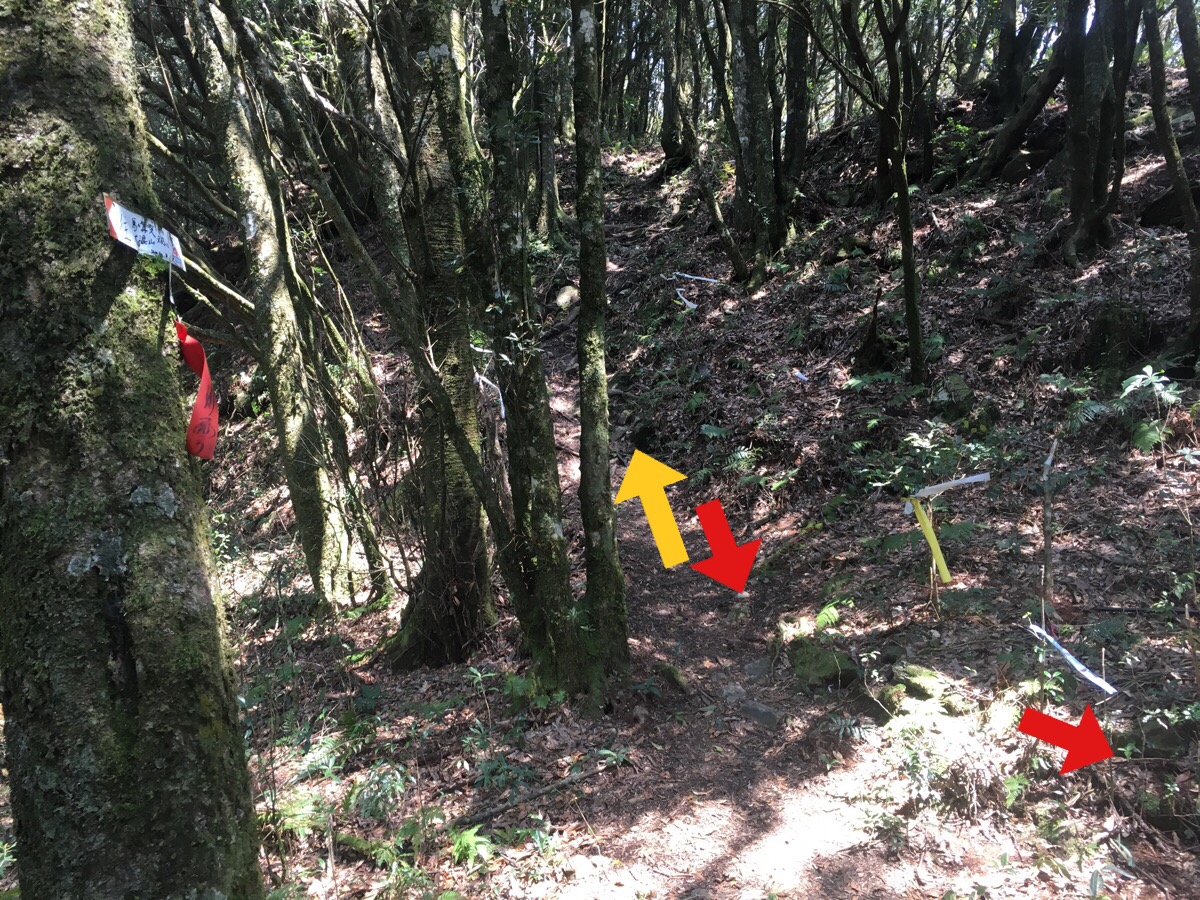 After a little less than an hour we reached the first junction. We followed the sign pointing towards 大混山/dahun shan. The sign pointing to where we’d come says 八五山/ba wu shan and 哈勇農場/hayong nongchang (a farm and campground which seems to have closed down). And the third sign says 西南稜隘勇支線 and 到下山 (大混山西南峯), this is an alternative route down the mountain – I’m not sure where it comes out.