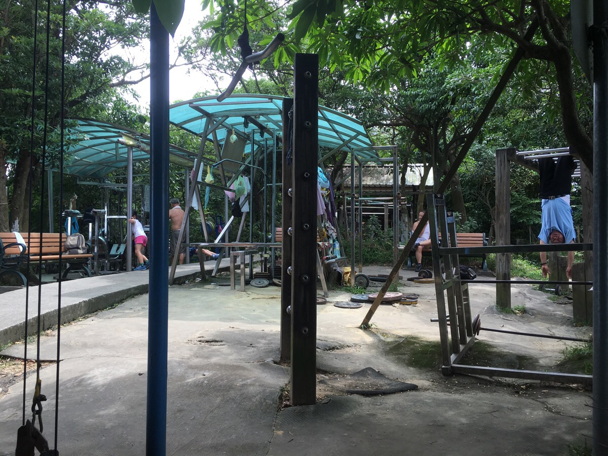 These places are different to the government-installed, brightly coloured exercise equipment that you see in parks all over, these are set up by local groups of old people and while I sometimes encounter younger individuals using them, more often than not it’s retired people. A basic mountain fitness station has a couple of pull-up bars, some calf-stretch blocks, hula hoops hung up on all the nearby trees and a few tyres to flex your back on. At a slightly more equipped place you might find a swing, multiple height bars and possibly a climbing ladder. If you’re really lucky, your local outdoor gym might come equipped with a shelter to run to if it starts belting it down whilst you’re exercising, parallel bars or gym hoops. This place had all the above and literally everything else too. Bench presses, cables and pulleys, monkey bars, lat pull-down bars, abdominal benches and while array of stuff I couldn’t name. On top of that, all of the equipment with moving pieces were sheltered under canopies to prevent them from getting too rusty.