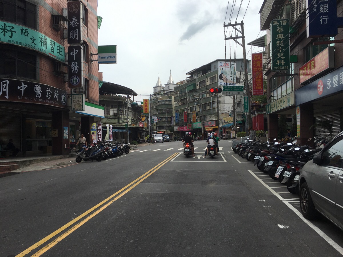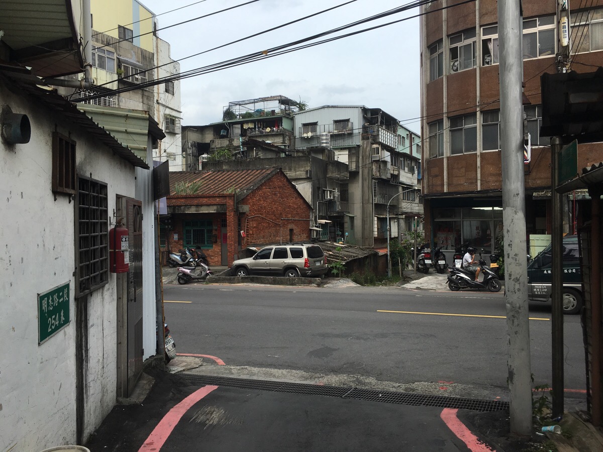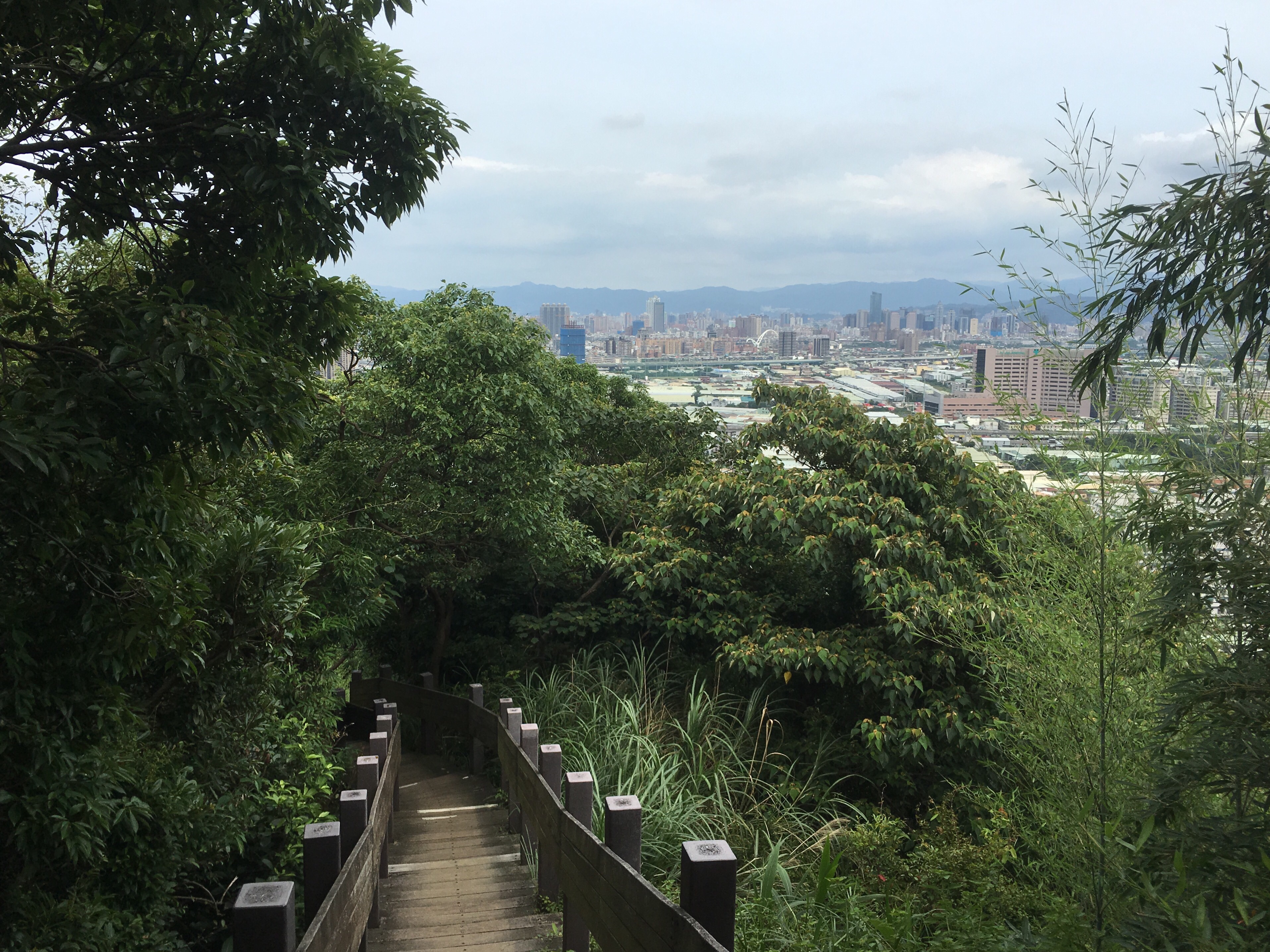 Part way down there’s a look-out platform where you can watch the planes taking off from Songshan Airport and spot Taipei 101 lurking in the haze beyond all of Taishan’s industrial units. An information board (with pretty good English save for the typo in the title) explains that Linkou Terrace, (the small hill that rises over Taishan), is a foothill fault – a raised area caused by the movement of tectonic plates around 60,000 years ago.