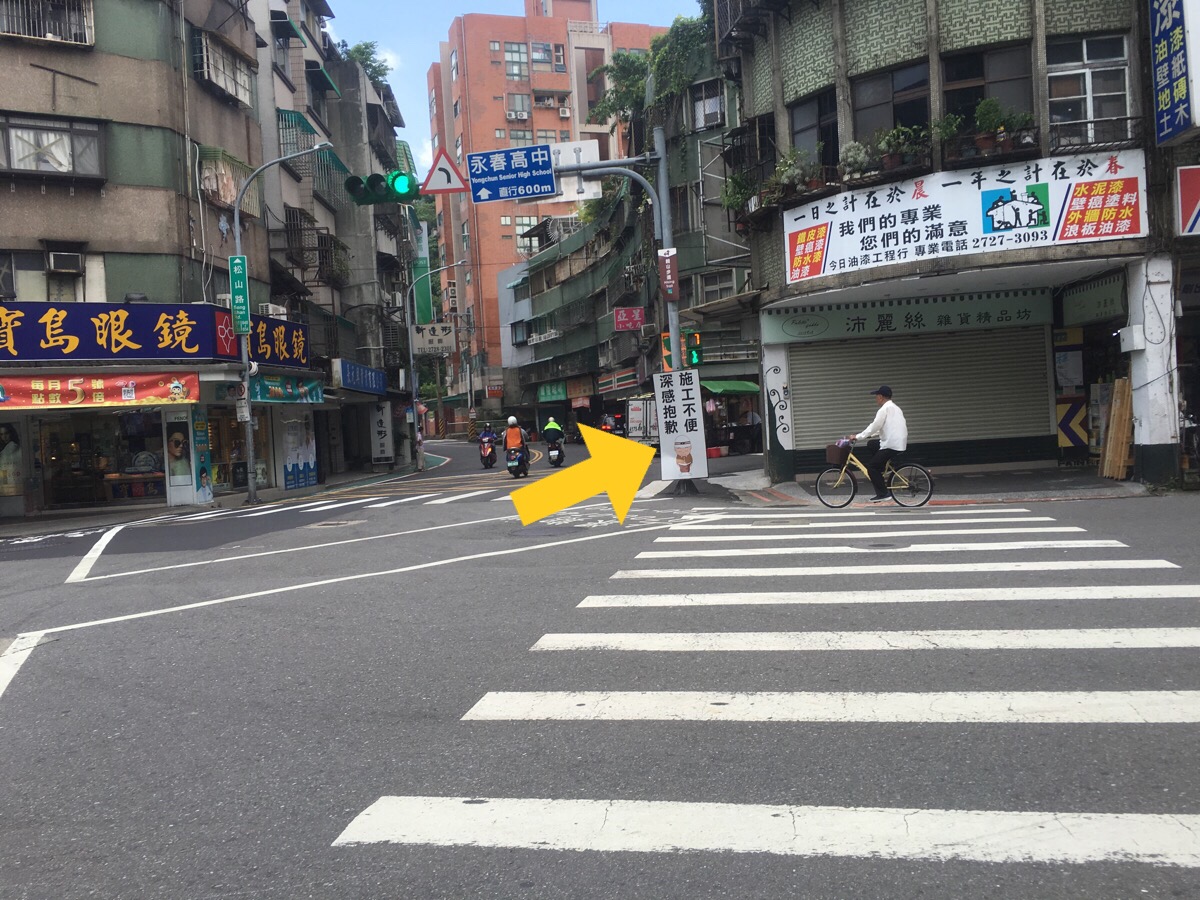 Starting at Yongchun station, take exit 4 onto Taipei-Keelung Main Road.
