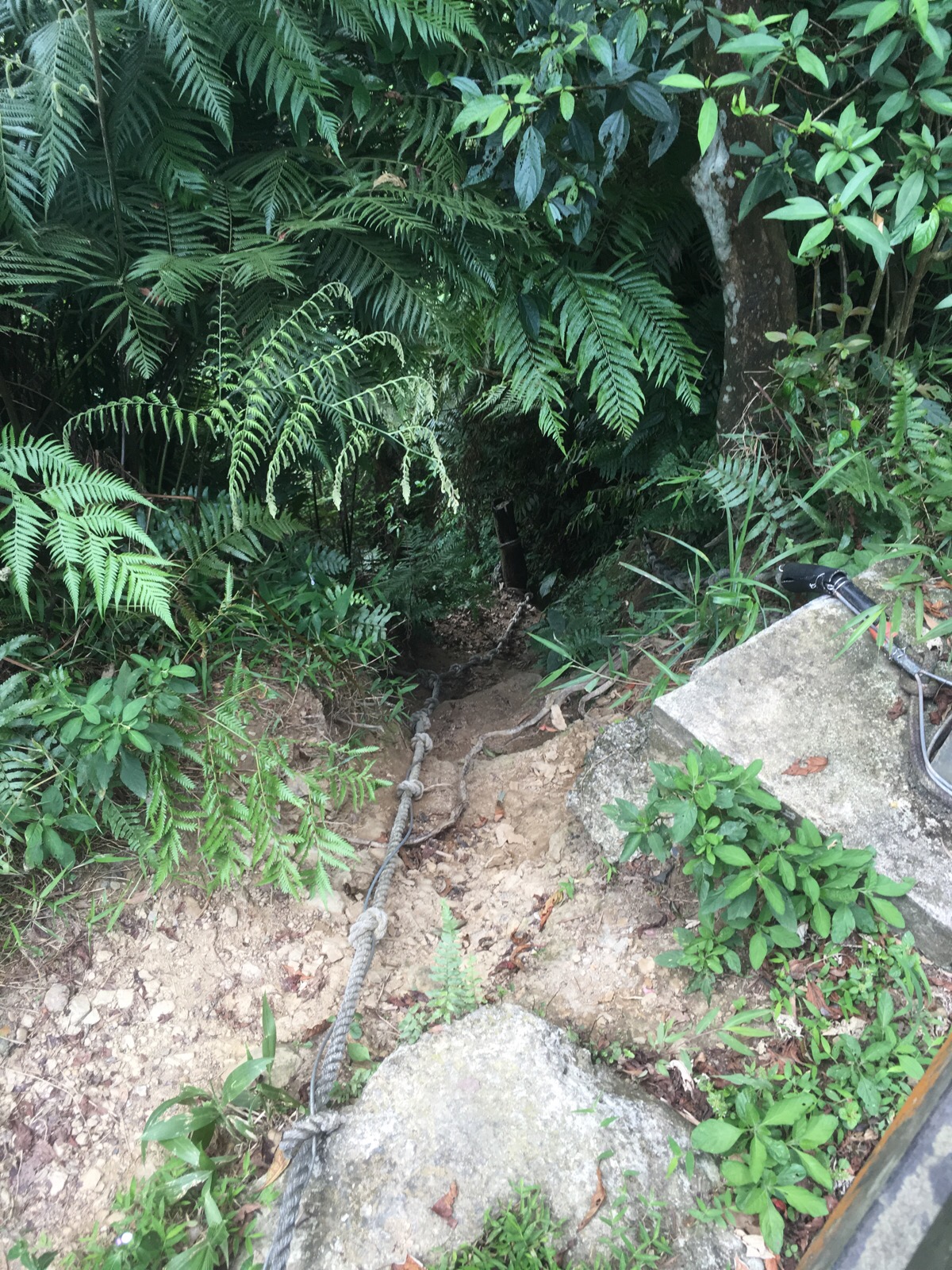 The trail passes a small, red brick Tudi Gong shrine, incense lit and the land God sheltering within. The steps just beyond this point are different to the rest of the trail, they seem to be made of a softer, more aesthetically pleasing sandstone which had been worn down by the passage of so many feet.