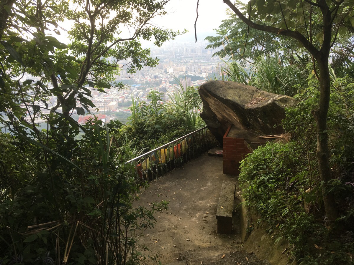The path arrives at Muzhi scenic area before the top of the hill itself. When I got there, there was only me and a small scurry of squirrels taking in the view, (actually, I think I was the only one taking in the view, the squirrels seemed altogether more concerned with whether or not I had anything they could eat). The lookout faces towards the northwest over Xinyi and Da’an district. A thermometer stuck to a tree told me that it was 34°C. Continuing up I passed the top of Muzhi Mountain off on a short spur to the right – I had a brief amble up the steps but returned onto the main path to continue on to Nangang shan.