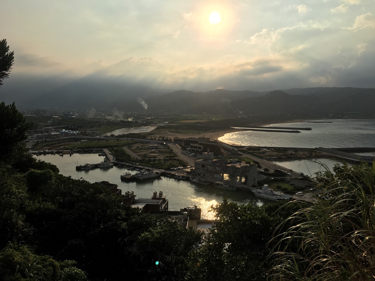 Since we went at dusk we were lucky enough to see the evening sun picking out details over Huangguang harbour to Jinshan Beach and the Datun mountain range beyond. The harbour takes its name from the river which runs into the sea at this location, Huang River, and the river itself is named because of the hot sulphuric springs in the area. To make things even more exciting, there were heavy rain clouds over the hills giving everything a dramatic sickly yellow-grey light.