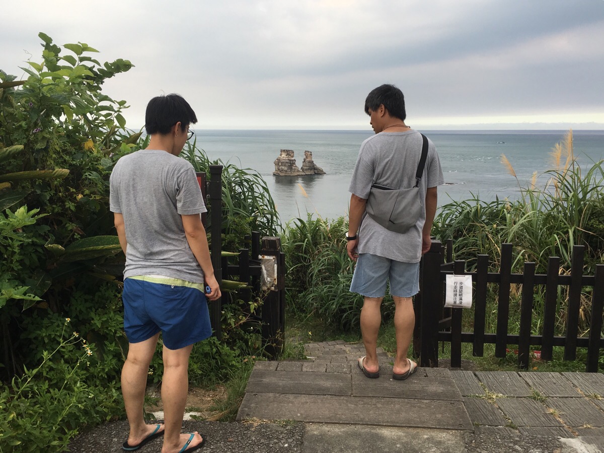 There are a couple of bright red pavilions near the far edge of the cape where people stop to view the two candlestick rocks. Once joined to the cape itself, these two pillars were formed after the sea eroded away the rock connecting them to land. There is a sad-sweet local story about these which reminded me of the story told about amah rock in Hong Kong. In the past, (as is still partially true now), the local residents of Jinshan area relied on the seas to provide food for the family. Many men worked as fishermen, a job which was filled with dangers. When her husband didn’t return one day, the wife of one of these fishermen waded out into sea to try and spot him but she couldn’t, she was worried, but this kind of thing sometimes happened and the boats would come bank in the morning. The next day when he still hadn’t come home she went back out to sea to wait for him. As time passed, she spent longer and longer stood in the waters, waves lapping at her calves, eyes scanning the horizon until eventually she turned to stone. Unlike in the Hong Kong story, her husband had survived the storm which dragged his boat away from the safety of the port, but by the time he returned it was too late. When he asked the villagers where his wife had gone they seemed uncomfortable and their eyes darted towards the stone figure in the bay. Understanding what this meant, the grief-stricken fisherman ran into the shallow waters and embraced the stone that was once his wife. Over time, he too turned to stone and it is the remains of these two that can be seen standing in the water to this day.