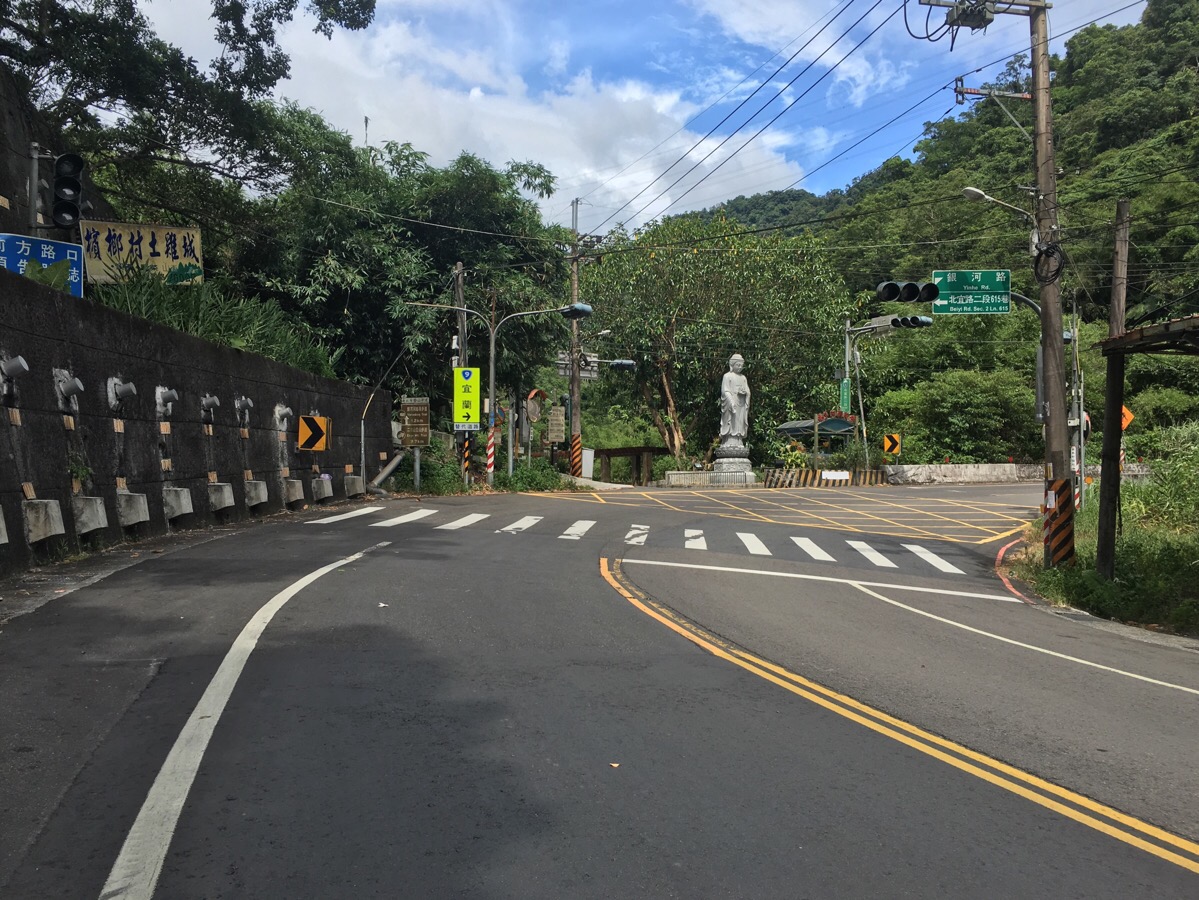 At the far end of a bend and next to a statue, you need to take Yinhe Road. It’s signposted as being the right route for Yinhedong Trail, the sign says it’s 1.2km up which is pretty accurate – it took me 15-20 minutes to get to the trailhead. As you walk up Yinhe Road you’ll find a few houses and small businesses. I was a little anxious that I might meet some company guard dogs but luckily there doesn’t really seem to be any. The road follows the river up and if you look over the rail, you can see fish darting around in all the larger pools. I also saw evidence that this area is much busier on weekends in the form of a mound of discarded coconut husks dumped into the stream. It really frustrates me when I see things like that, doubly so since I’m not sure that as a foreigner I have any right to pass judgment on what Taiwanese people do in their own country.