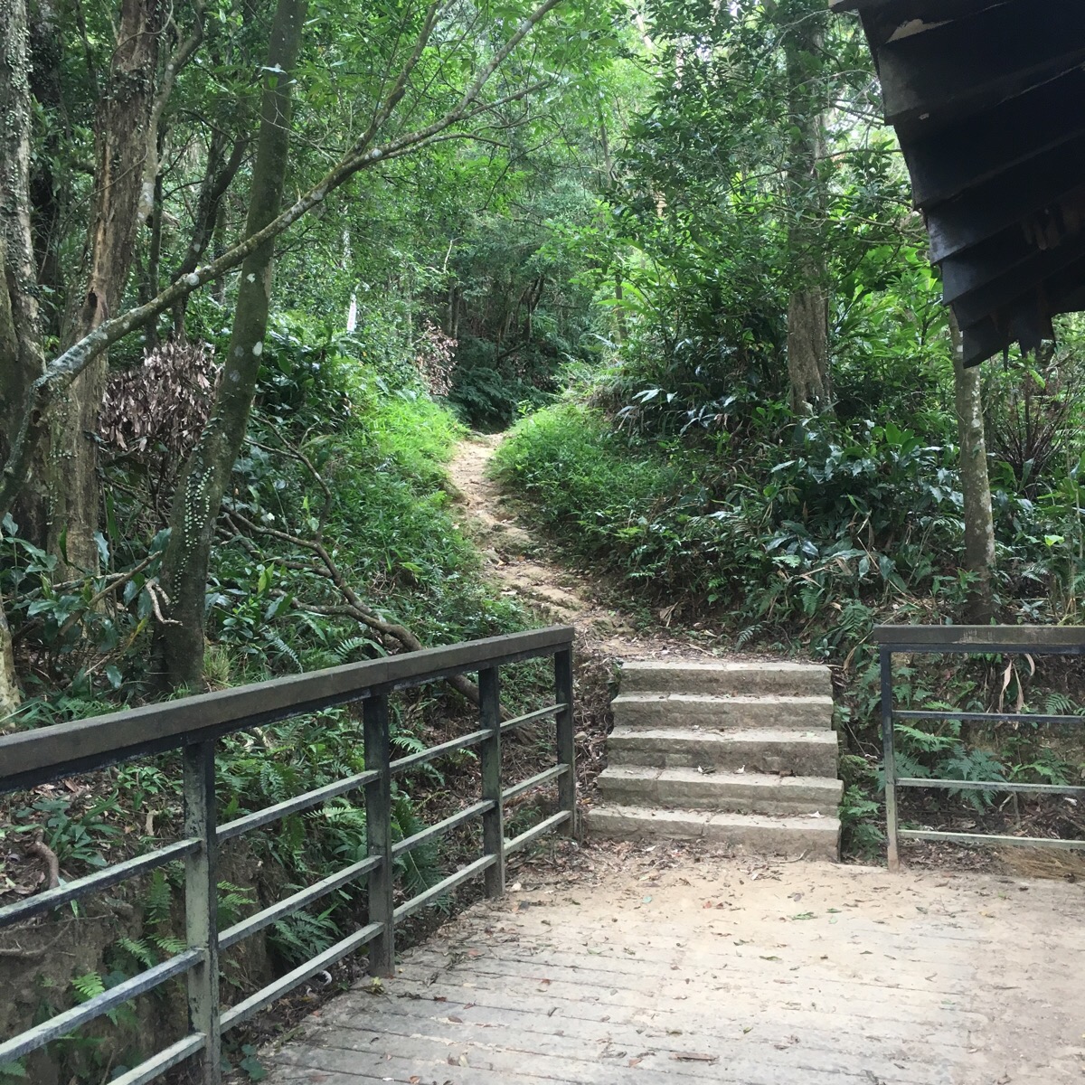 At a farm area, the path goes over a bridge and up some steps. There’s a map and a signpost at this junction. The signpost and the map suggest that this is the only route from here but using my GPS app, it looks like at least five paths converge on this point – the other paths seem to be a lot harder and rougher, not the sort you’d want to do alone or unprepared.