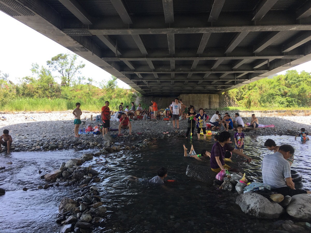 The weekend Yilan-ers might head to the nearby Scenic Spot of Wu Lao Keng, but in the summer you might find that a more comfortable place to be is a just a short walk away under a rail bridge.
