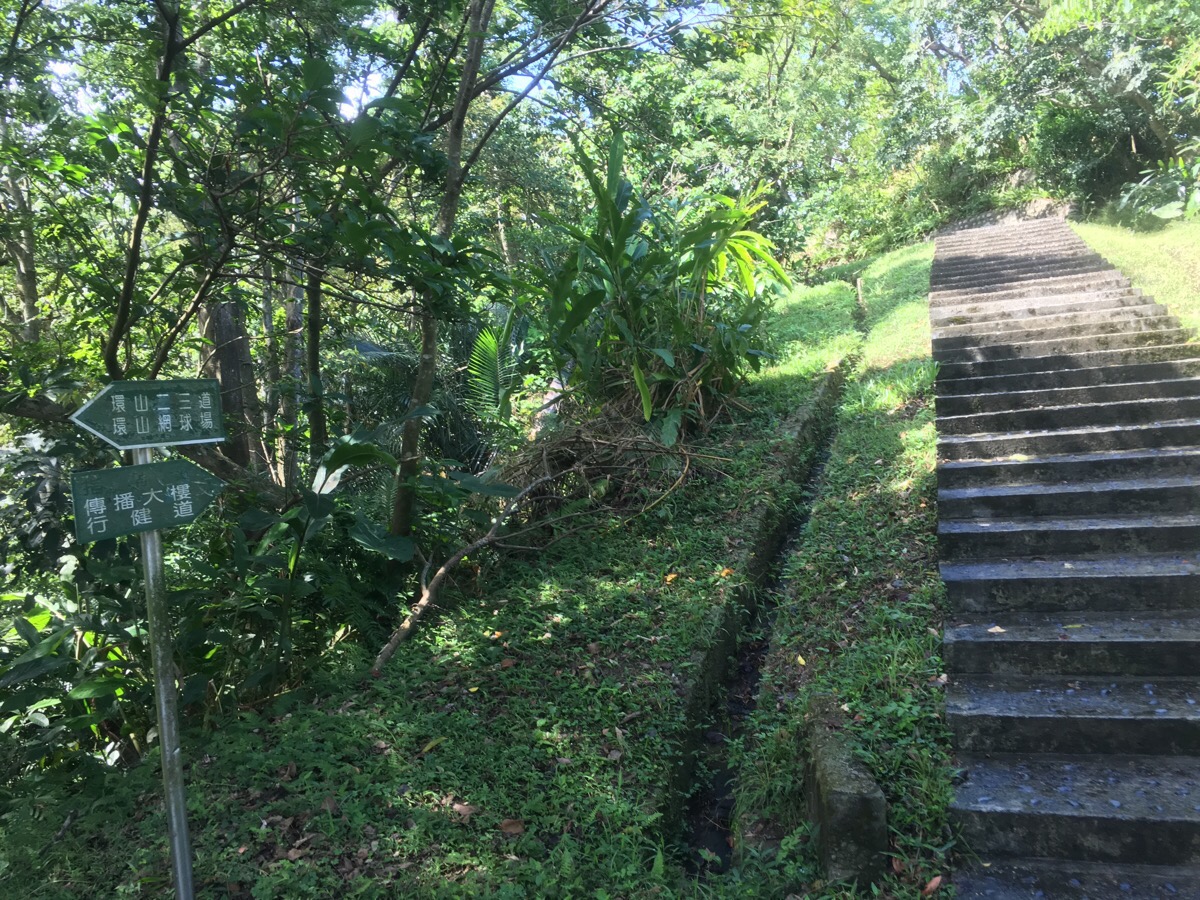 At the second junction we stopped heading towards the tennis courts and instead took the righthand steps up towards 傳播大婁行健道.
