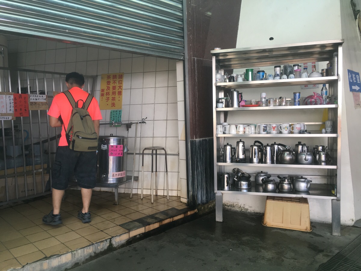 The front of the temple courtyard drops away to reveal views back over the city and we caught a glimpse of some jets trailing plumes of red, white and blue smoke as they passed over the city for Taiwan’s Double Ten Day celebrations. When we were ready to move on we filled up our water bottles with tea and headed back the way we’d come.