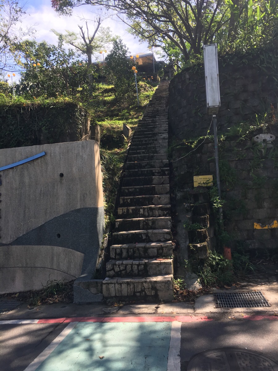 I didn’t turn my tracking app on immediately so you can’t see this part on the map. We started near Taipei Zoo Station, (turn left as you walk out of the station exit), and walked along Xingguang Road Section Two until we reached these steps (on the right of the picture).