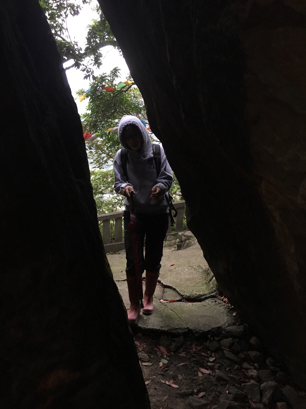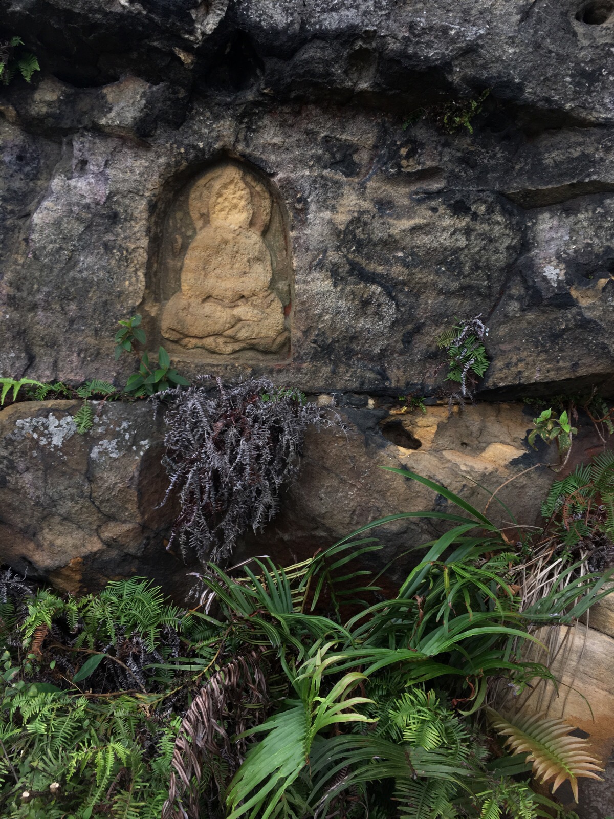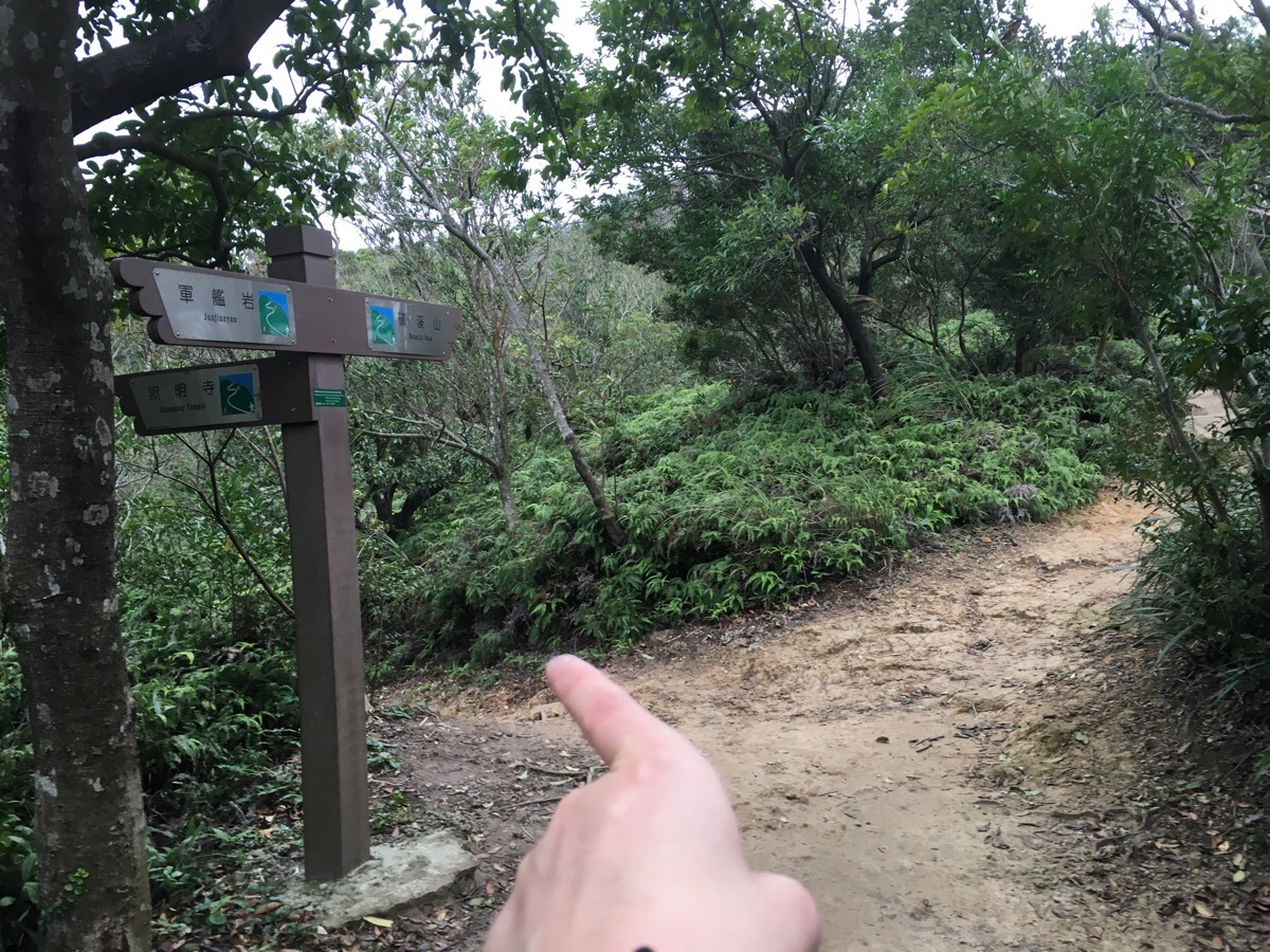 Less than five minutes after leaving the main path we came to 弘法大師岩, an old Japanese shrine to Kūkai, (a Buddhist monk and poet). If you search online, you can find old photos of how it looked during the Japanese occupation. It seems that in the years since then, nature has reclaimed a lot of the space around the large rocks. It also seems that the shrine is only sometimes open since when we went, the shutters were closed. There are lots of photos online showing what it looks like with the shutters open though.