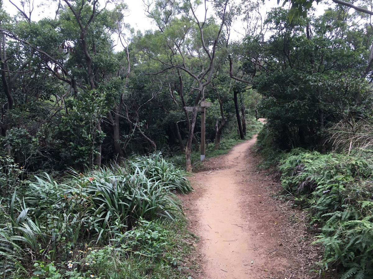 The sandy path passes an old-person exercise area on the left, with a sign indicating that Wellington Heights is only 150m down the path. We followed the sign which said 1100m to Zhaoning temple.