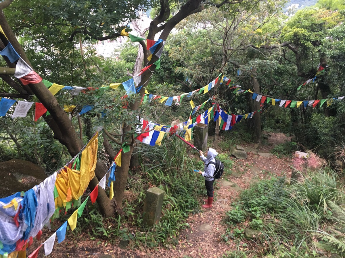 As with a lot of the Japanese mountain shrines still visible in Taiwan, the area is strewn with Tibetan prayer flags.