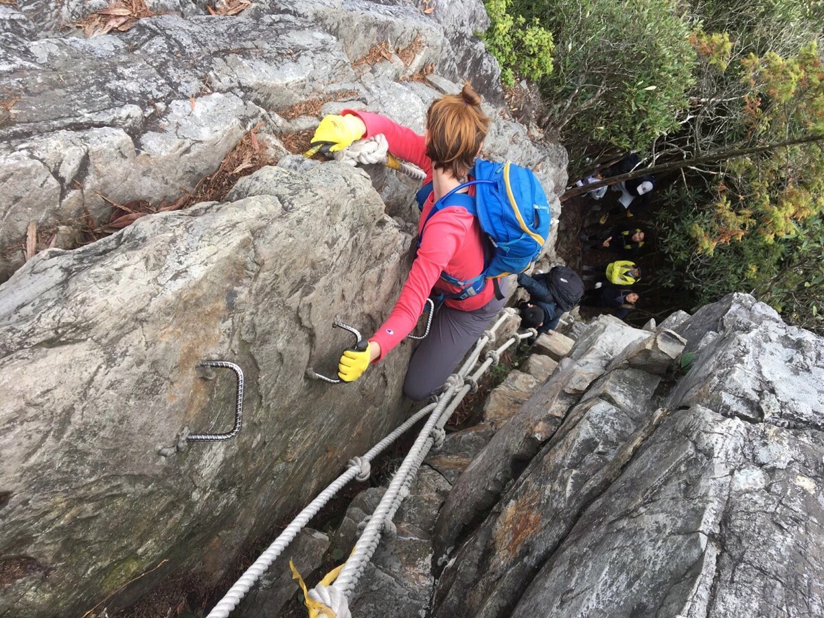 The reason for the queue was several tricky roped sections that had to be tackled by one person at a time. However, as we drew closer, it became increasingly evident that the reason for the hold-up wasn’t so much that it was difficult but more that the people doing it had little to no experience of how to attempt it. Some people were going down near-vertical slopes facing outward. Others were starting and then stopping because they were afraid. Of course, I was a patient and courteous hiker, but I’d be lying if I said I didn’t find it annoying – just because it is a short climb, it doesn’t mean that it’s safe or easy.