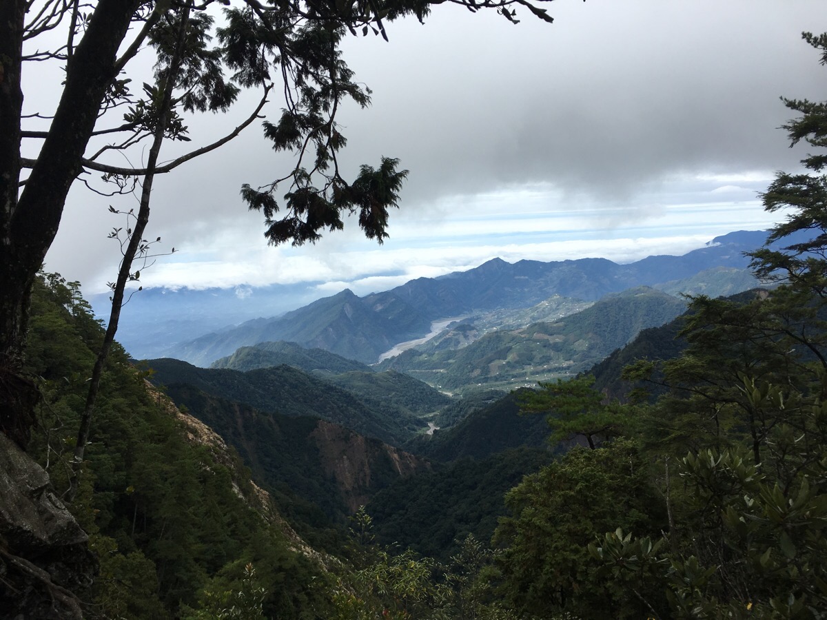 Along the way, there are several gaps in the trees which offer views, mostly over to the Northwest. Although both Yuanzui Shan (2180m) and Shaolai Shan (2307m), are pretty small for Taiwanese mountains, I am still constantly overwhelmed by the scale of the scenery here. The peaks we could see were peaks upon already-elevated mountain ranges, it’s a landscape that I doubt I can ever tire of.