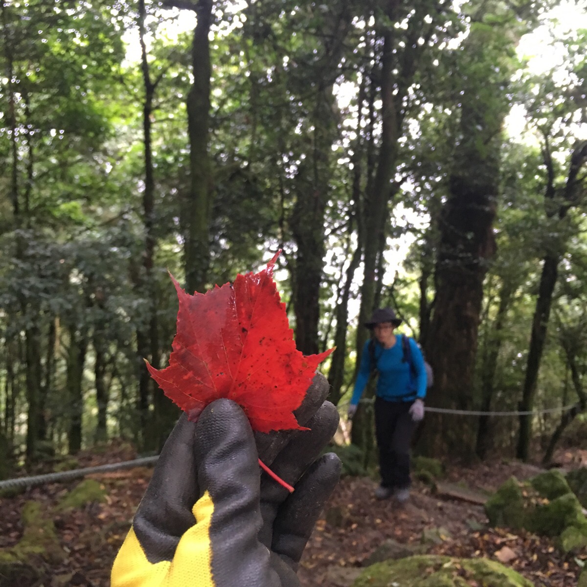 The steps on the slope up to Shaolai shan were littered with more bright red leaves than I think I’ve ever seen in Taiwan. Back home Autumn is much more of a noticeable thing, but here in Taiwan, the transition between summer and winter isn’t so clearly marked by changing leaves. The shedder of all these leaves was a stand of maple trees (Acer morrisonense according to my googlings). As we got within about five minutes’ walk of the peak, we started to hear the chatter of people who’d arrived before us.
