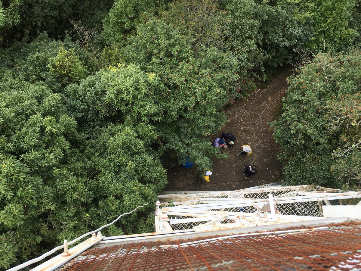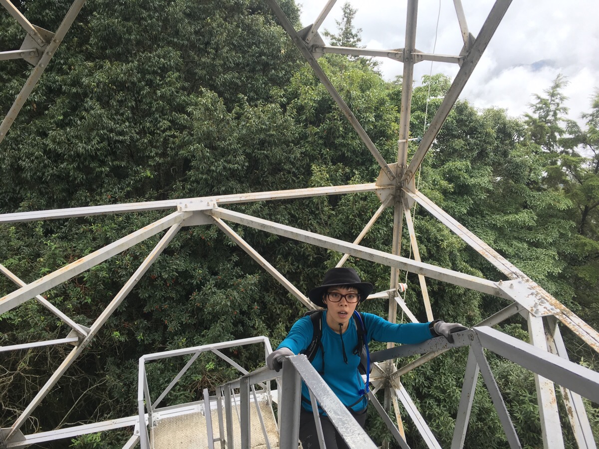 Upon arriving at the peak, the first thing we noticed was the weird, rickety construction which looked like the component parts of an electricity pylon had been rewelded to form a lookout tower. The flimsiness of it wasn’t enticing, but why go all the way up to the top of the mountain and then not climb the last 10m or so?