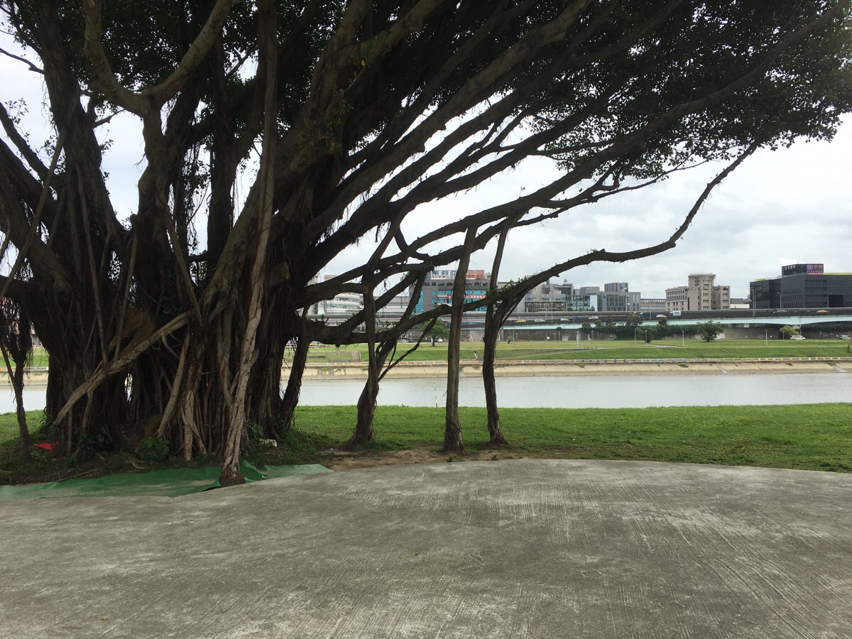Opposite Guanshan evacuation gate there is an impressive stand of banyan tree. They look like they’ve converged there in a kind of square for a reason – maybe to gossip or to shelter an invisible dwelling. Park management has concreted the area between them, as if to prevent them from drawing too close.