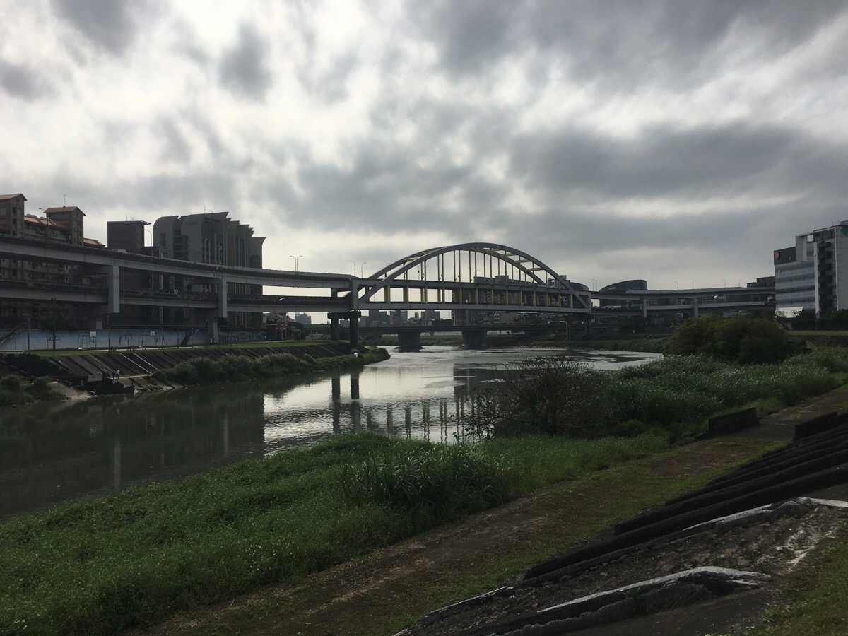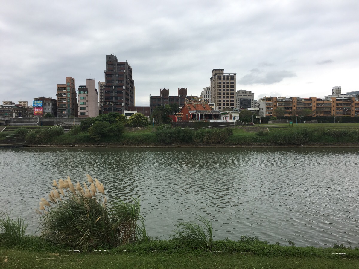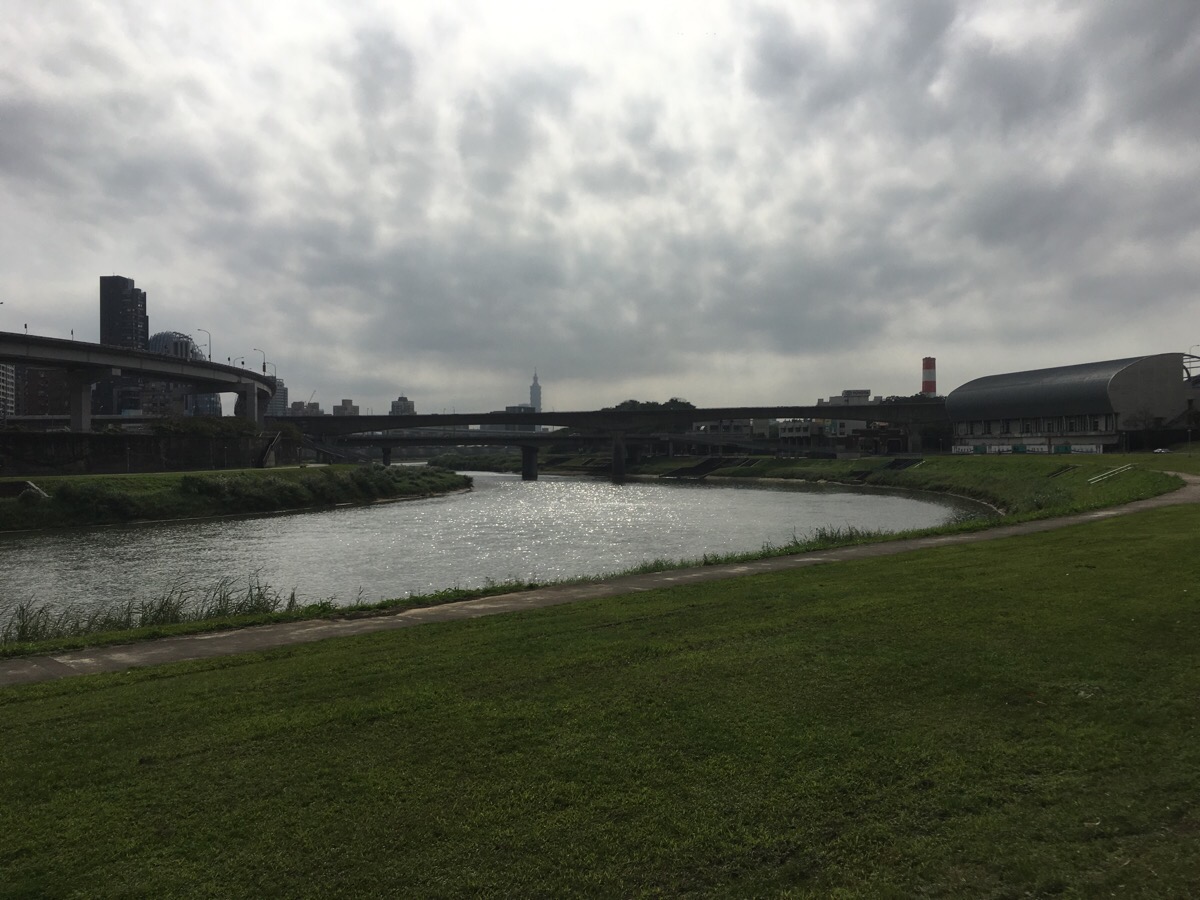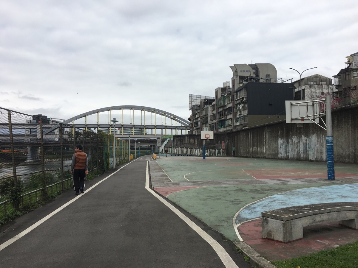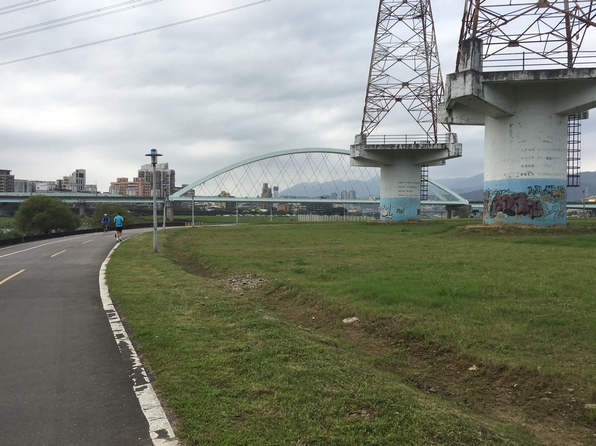 Since it wasn’t evening, and I wasn’t yet hungry, I carried on with my journey towards the 0.0km mark, (the measure counts up to where the Keelung river meets the Tamsui river). Beyond the Rainbow bridge, the park becomes Chengmei Left Riverbank Park and the feeling of the route seemed to get a little less polished – the space between the two flood walls narrowed, meaning that you’re closer to the buildings on both sides.