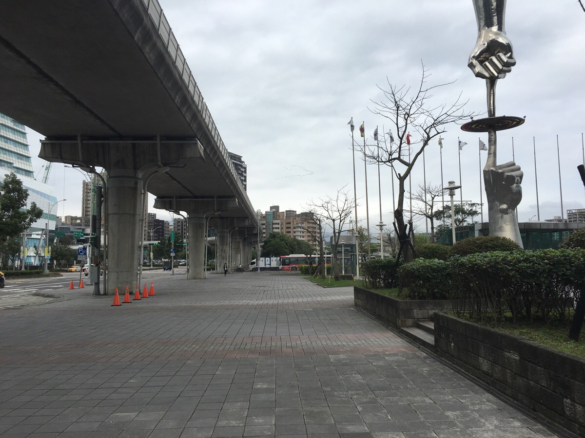 To get onto the north bank, I had to cycle past Nangang station and Nangang Software Park station then over Nanhu bridge. This route takes you past this eye catching statue lengthily entitled ‘The Beat of Civilization the State of Union between Heavan and Humans‘. The arm cuts off just above the limit of the image, but I like the fact that you can make it into a kind of optical illusion.
