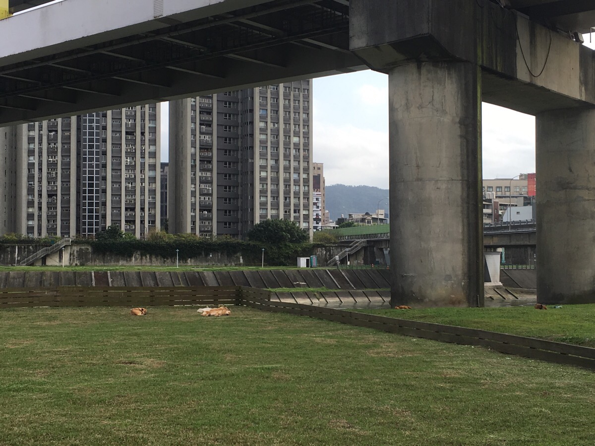 At Dajia bridge, Dajia Park ends and becomes Yingfeng Park. Here you can look north towards Neihu and see the Miramar Ferris Wheel. This park has more sports facilities, including baseball fields, roller-skating rinks, football fields, hockey fields, and even a (slightly old-looking) miniature golf course, (bring your own putters). Many of these were in use on a Wednesday afternoon, so it must get extremely busy on the weekend. There is also a dog park which is separated into enclosures for large dogs and small dogs – apparently this was Taiwan’s first leash-free dog park. Given that most older Taiwanese seem to feel that leashes (and indeed accompanied dog-walking) are unnecessary, I would love to know how the planning committee for this dog park sold their idea: “It’s a place where you can take your dog and let them run around.”, “You mean like a street or a park?”, “Well, more like a smaller park in a bigger park. You know, so that the dog can’t run away or bite kids or get hit by a car, that kind of thing”, “…nah mate, it’s alright, I’ll just let my dog walk itself.”
