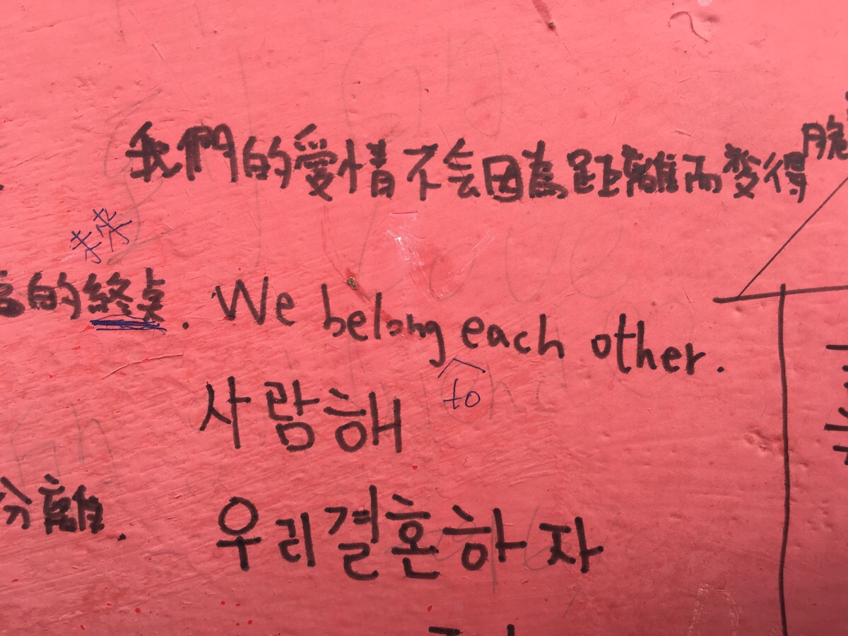 But most of all, I enjoyed the fact that someone had gone along and corrected the grammar of many of the messages scrawled on the metal framework.