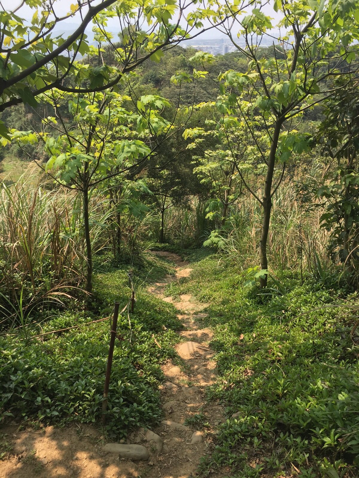 After the path levels out and until it starts to turn northwest is the most scenic part of the walk. The trees on the left drop away and you can see out over Yingge towards Sanxia.