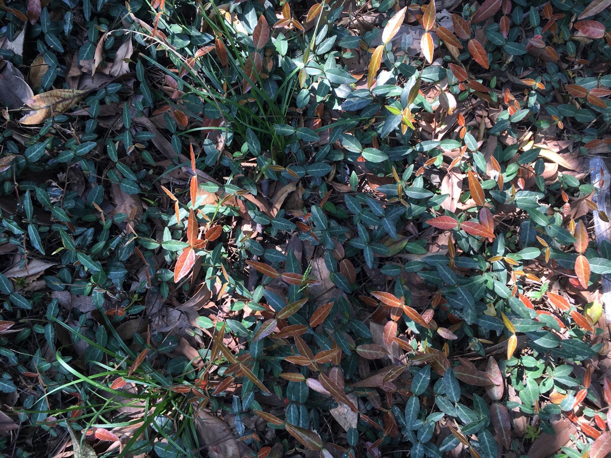 Another smaller-scale sight which I appreciated was this ground-growing plant which had leaves perfectly suited to decorating a Christmas wreath. I haven’t been able to identify it, so please let me know if you have encountered this decorative shrub before.