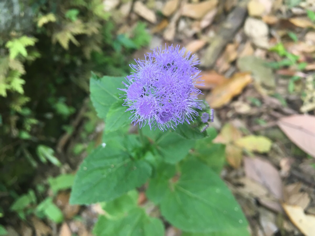 Along the way we passed a huge number of these fluffy-looking purple flowers. Their scientific name is ageratum houstonianum, but they go by several much more evocative common names including: flossflower, pussy foot and Mexican paintbrush. It is native to Mexico and is an invasive species here – partly due in fact to its remarkably effective defense mechanism, it triggers early moulting in insects which moult and can cause sterility if they eat too much.