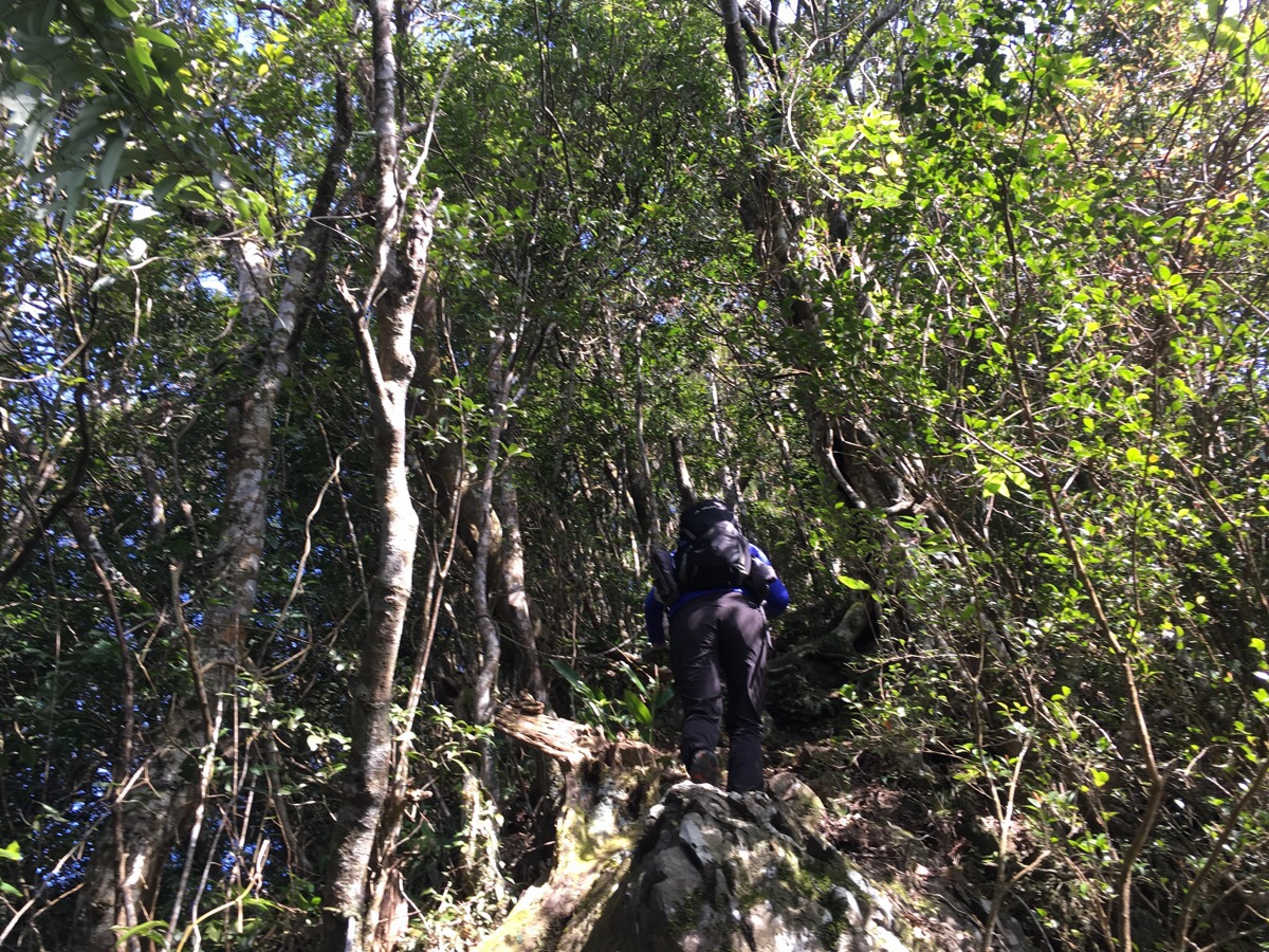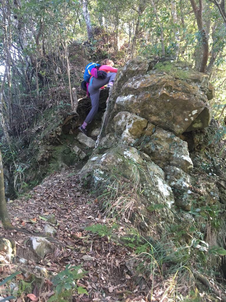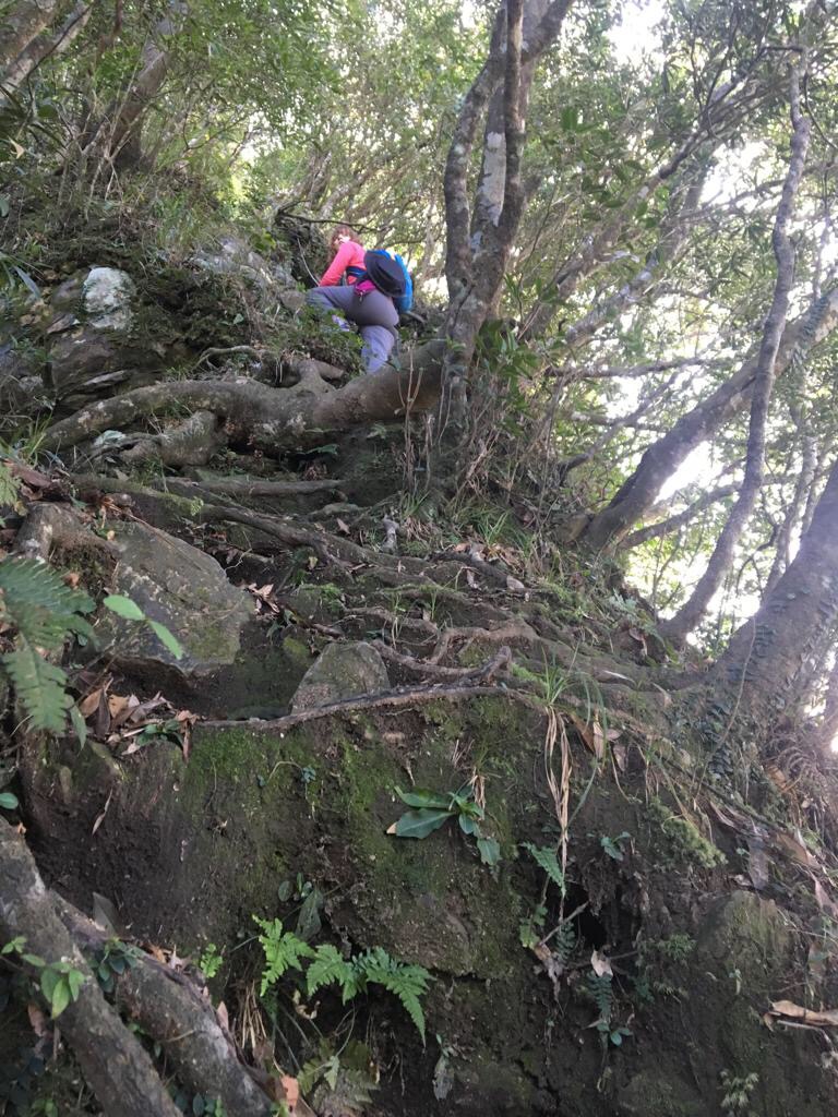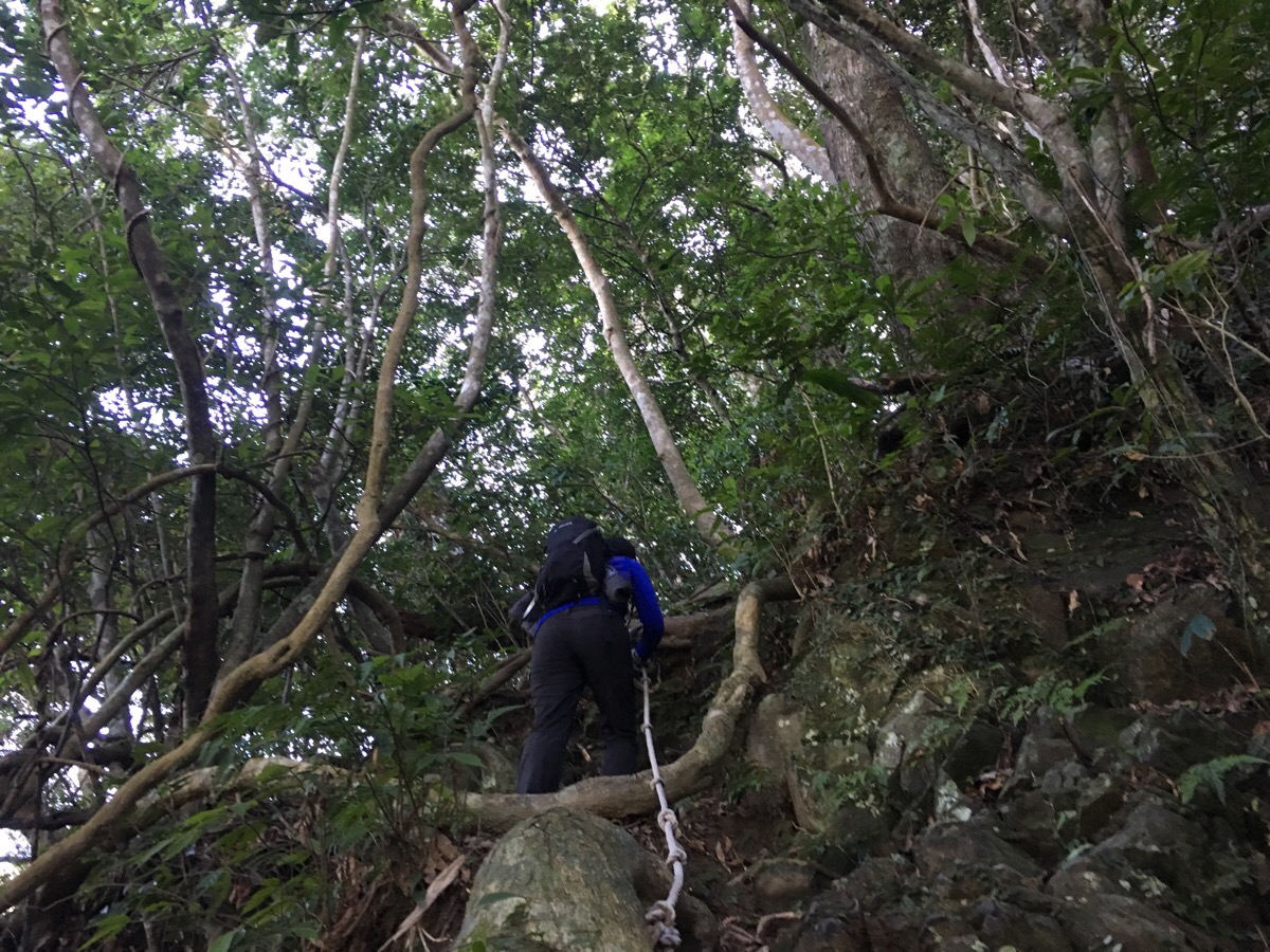 Difficulty (new Taiwan hiker): 7.5/10 – It’s challenging, don’t get me wrong, but either I’ve toughened up a bit or it’s not as difficult as some others we’ve attempted. It’s steep, there are numerous tricky roped sections where you really wouldn’t want to make a mistake, and the upwards path surface is mostly loose shale. For these reasons, it wouldn’t be smart to do the loop in reverse, (roped sections and loose surfaces being twice a as bad heading down). Having said that, this trail doesn’t require as much upper body strength as some trails we’ve done, there aren’t so many alarmingly exposed sections (although there are one or two spots where the path traverses a narrow ridge with only trees to half hide the dizzying height that you’re at), and as long as you have a basic idea of where you’re going (preferably with a map), it’s very easy to keep on the correct path. For experienced Taiwan hikers this would be pretty fun, for inexperienced hikers or those new to Taiwan’s trails it would be extremely hard.