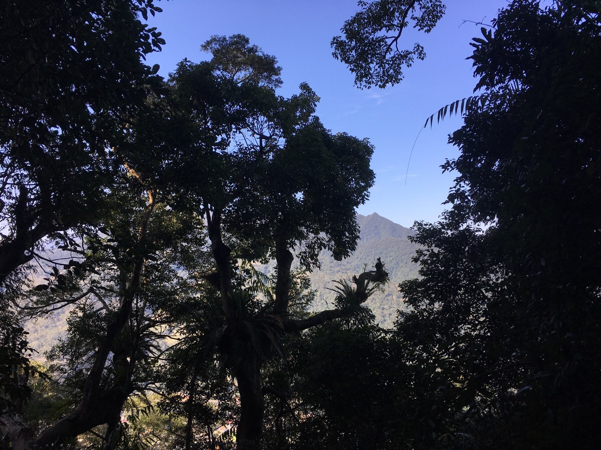 Leaving the clearing behind, the relentless up persists. Through a gap in the trees, we could glimpse the hills to the other side of Nanshi River.