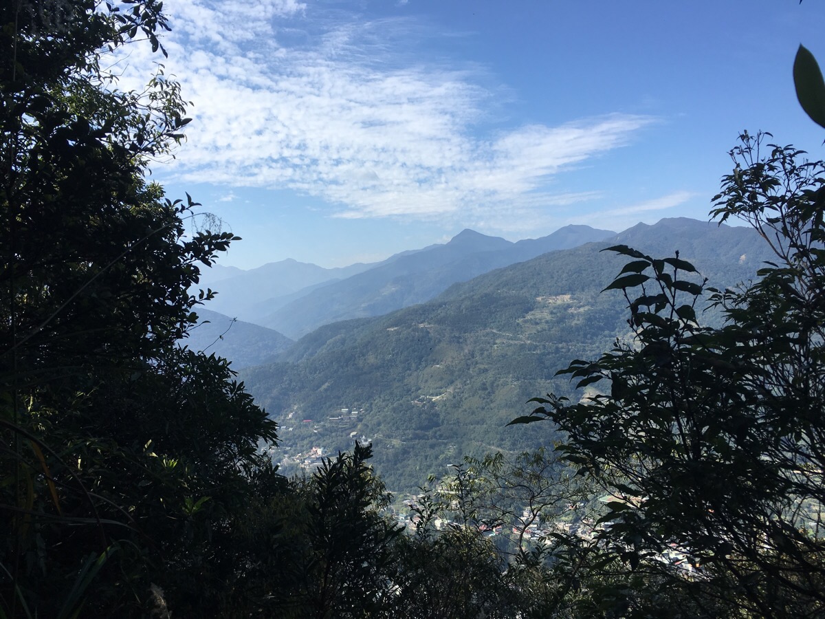 10:11 – Periodically the leaf coverage would disappear, giving us amazing views like this. Here, you can see back down towards the river valley and Wulai. The nearest peak is Meilu Shan, if you keep heading west in that direction you will eventually get to Lala Shan, the old Hapen trail (which I would love to do if I can organise it), starts somewhere in this valley.