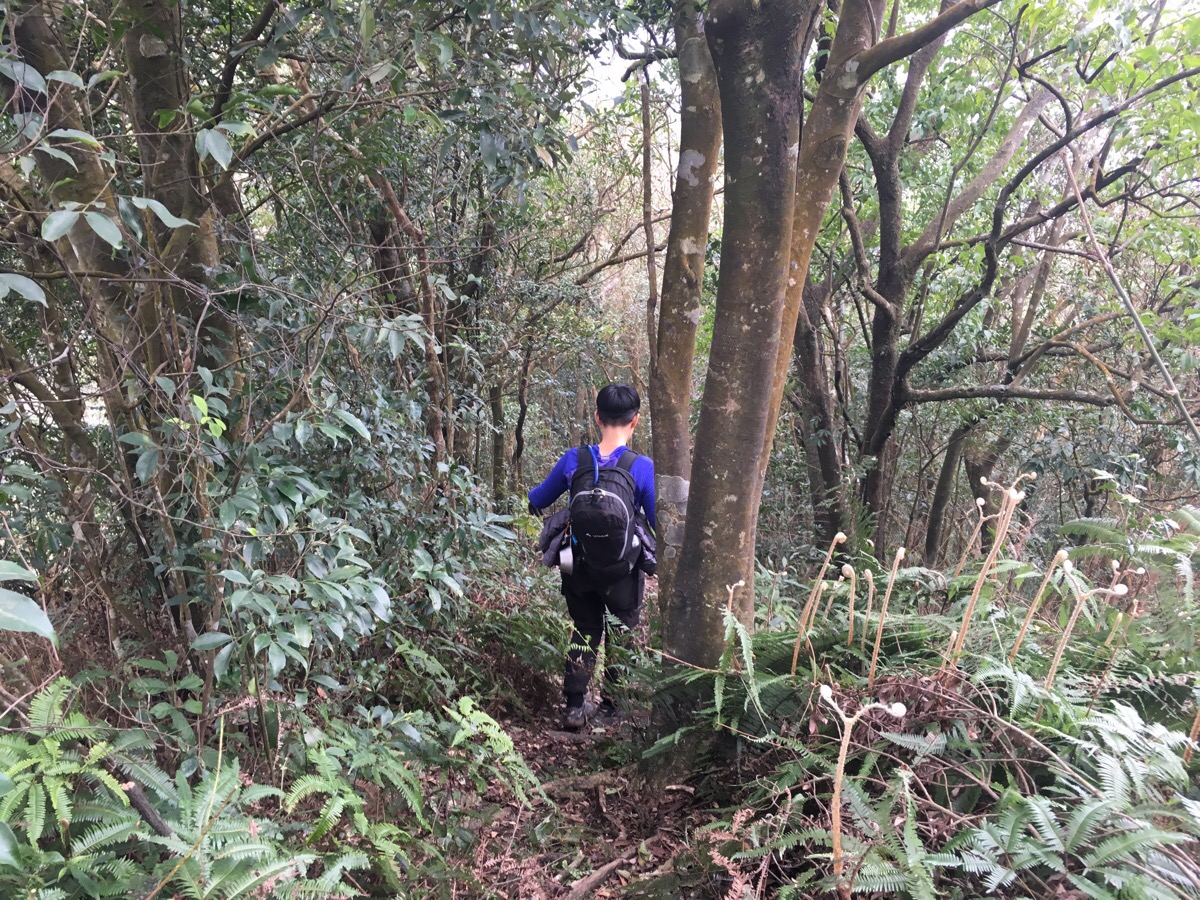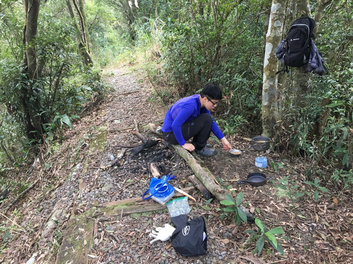 13:40 – Actually we back-tracked a little to eat here, the original plan had been to head on to Si Kan Shui Shan/四崁水山 and stop, then walk back before heading down, but the path was almost non-existent so we only went 50m or so before giving up on the plan and returning to the nearest flat piece of ground to cook lunch.