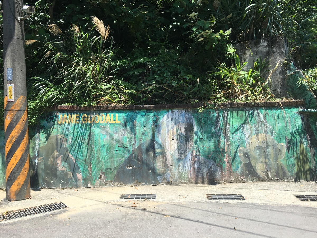 Right outside Ruifang Elementary School there is a faded but cute mural of Jane Goodall and some chimpanzees.
