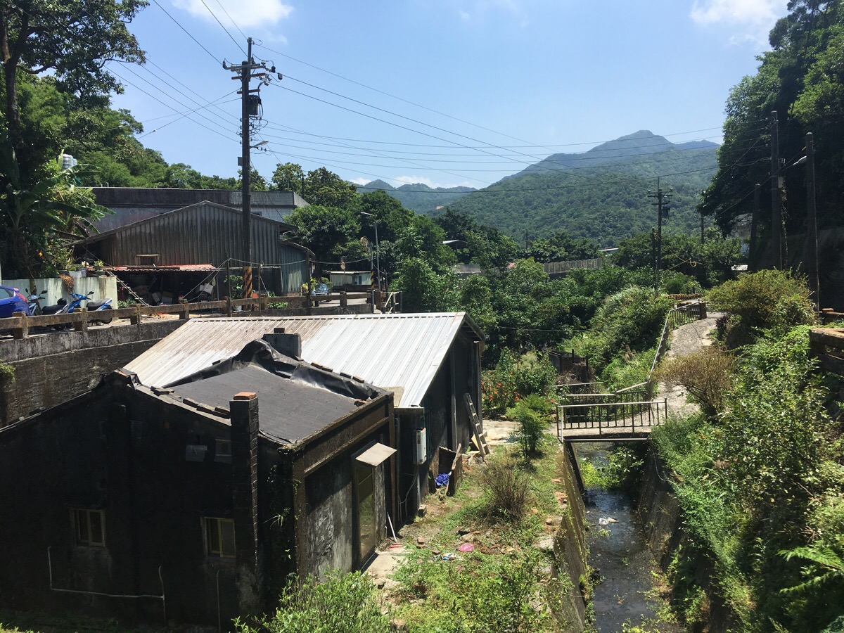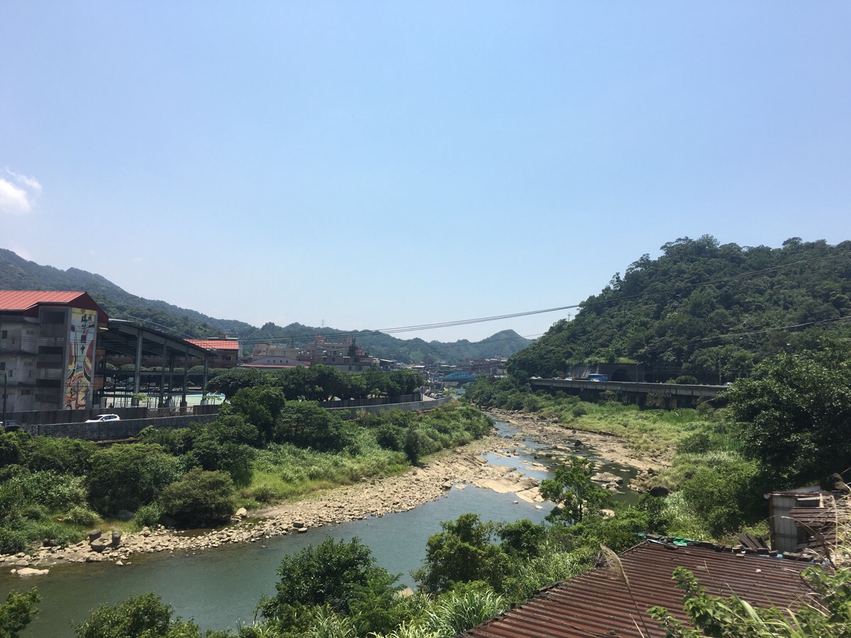 After passing some single story dwellings on the left, Keelung river comes into view.