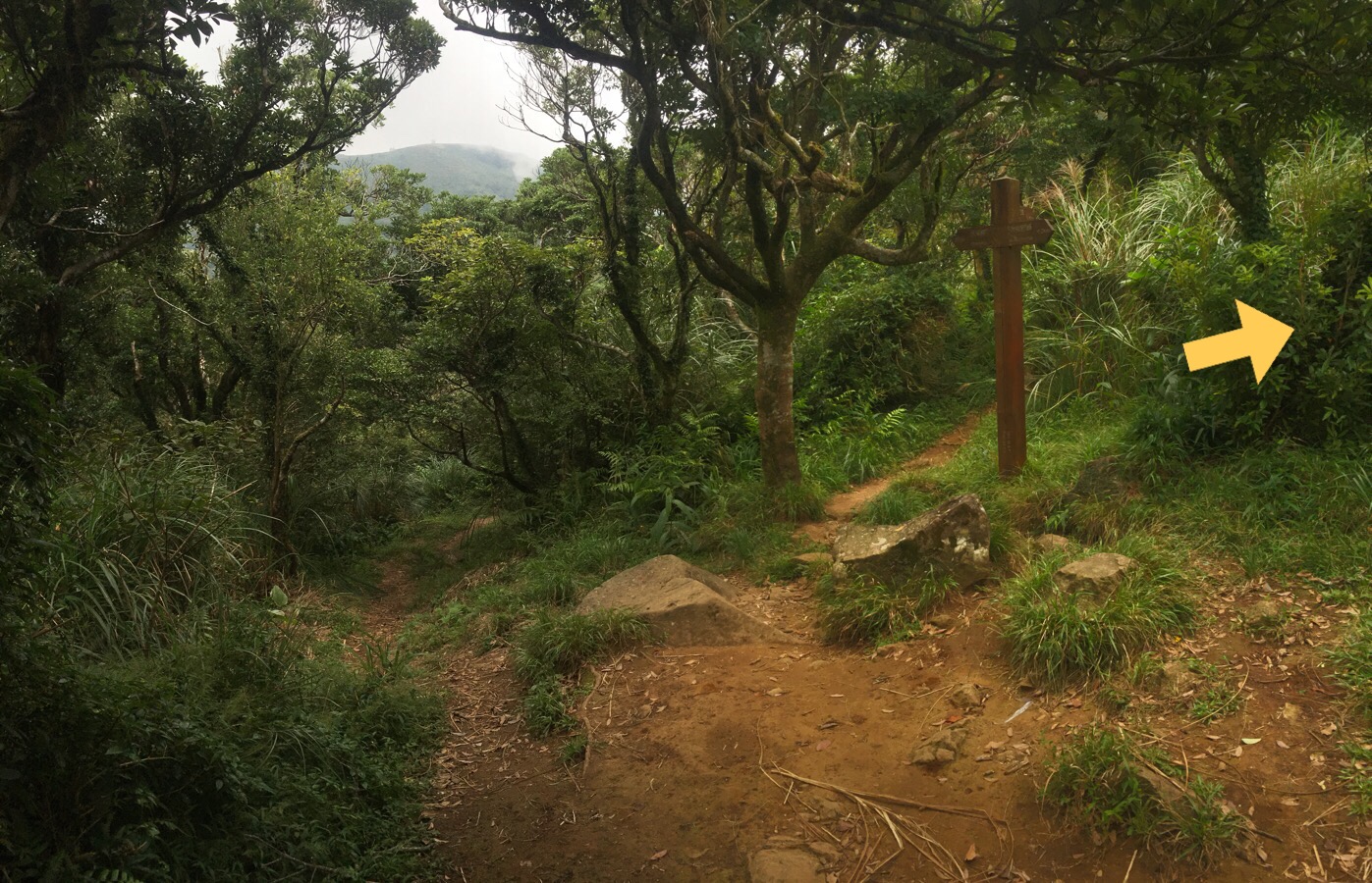 Almost immediately after reaching flatter ground, the trail fork: left towards datun ping (a hollow between peaks) and right towards the south peak. We chose to continue with the tougher trail up to the south peak, but if you’re feeling tired you could head down to where the trail becomes paved again.