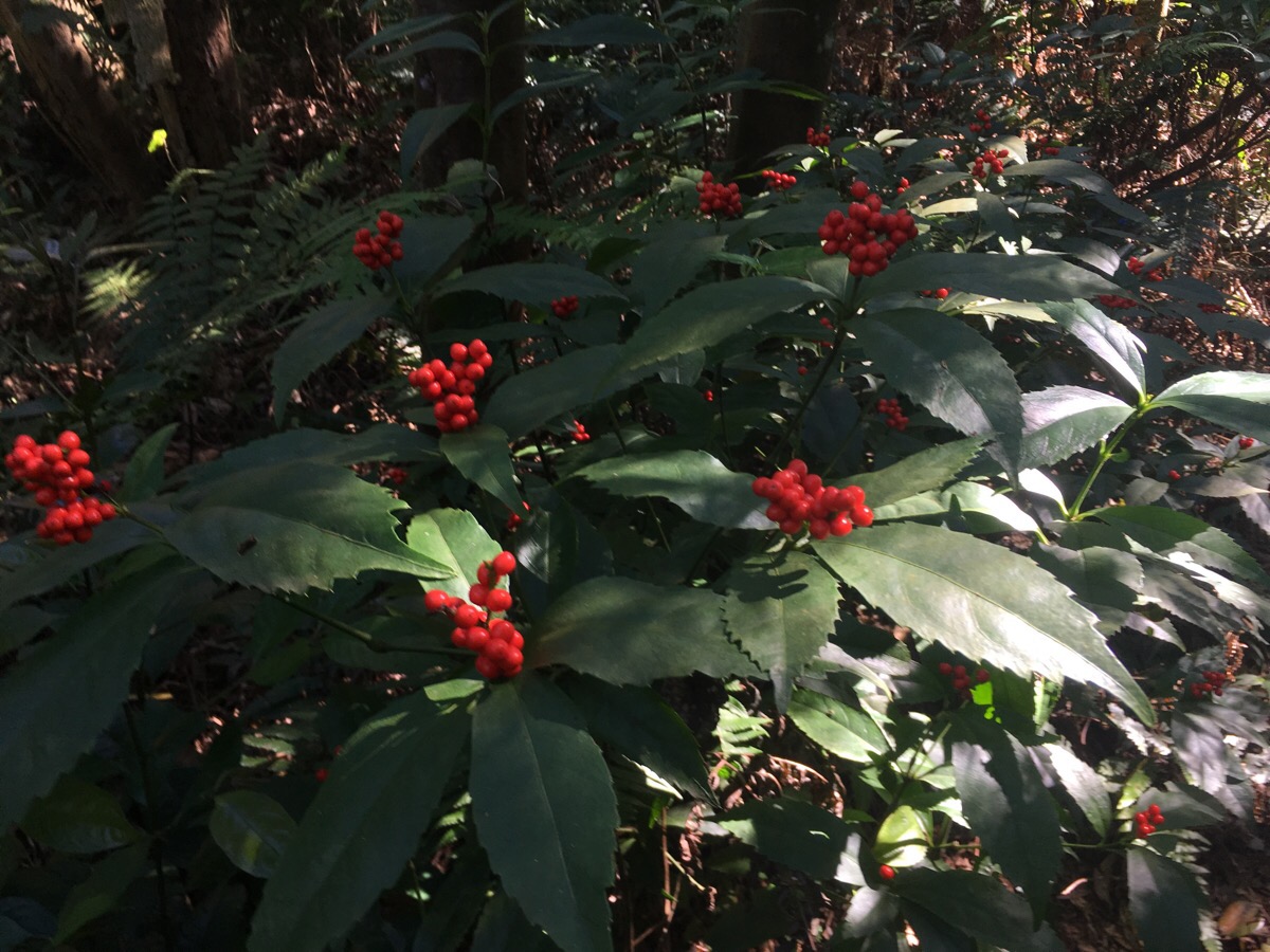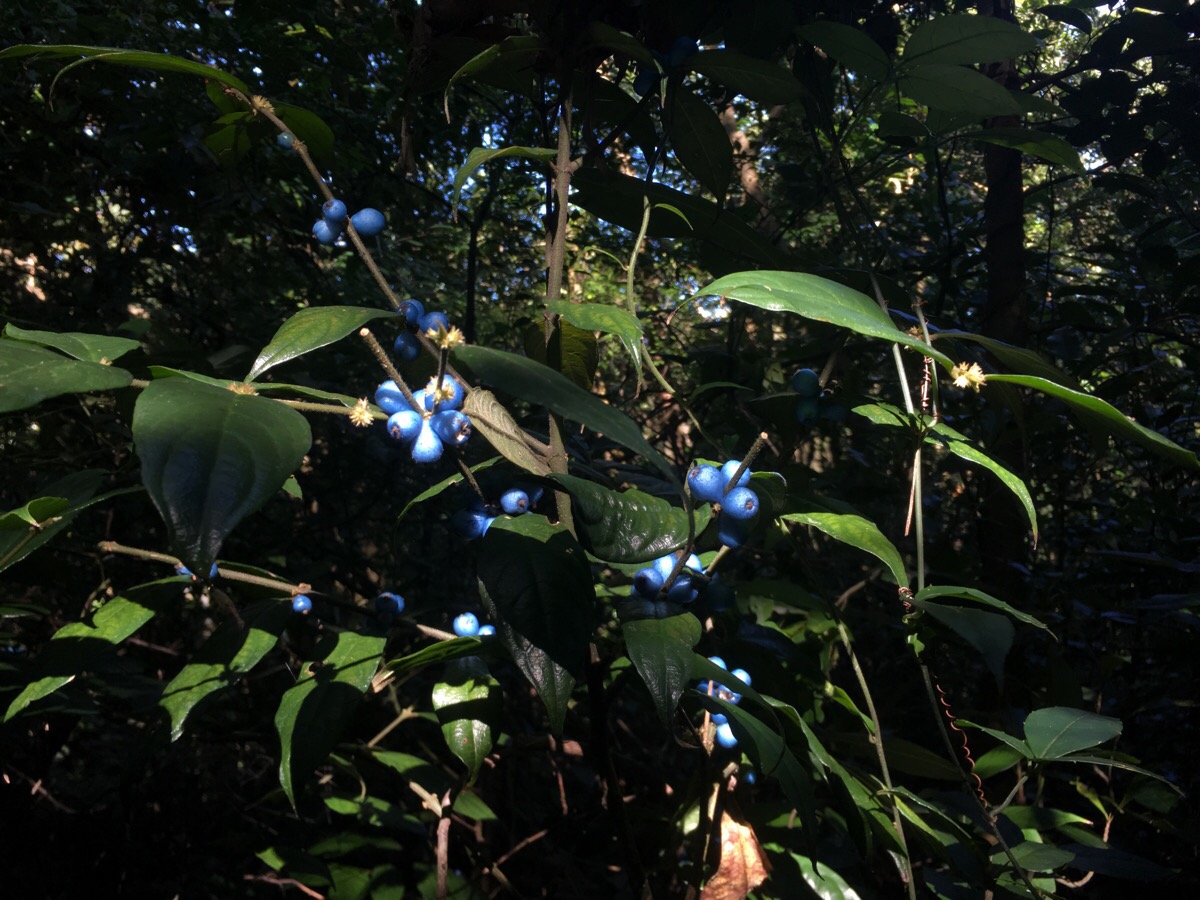 I’m not sure what this blue one was, but these plants were present in abundance all the way through the lower reaches of the forest. To the right of the trail about ten minutes in we passed a small door to an old dwelling of some sort. It’s marked with trail tags, but you could easily miss it if you weren’t paying attention (as Teresa did).