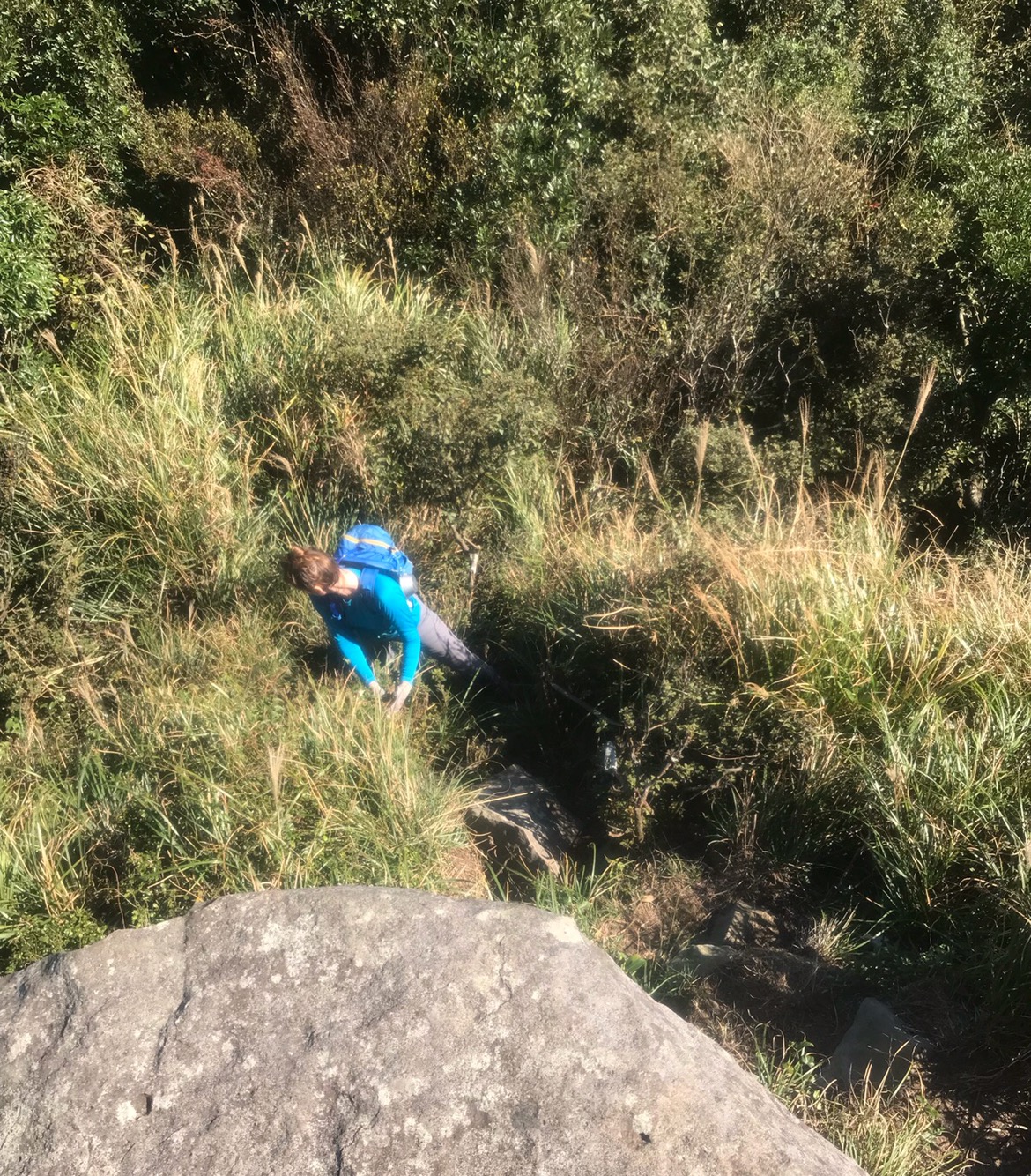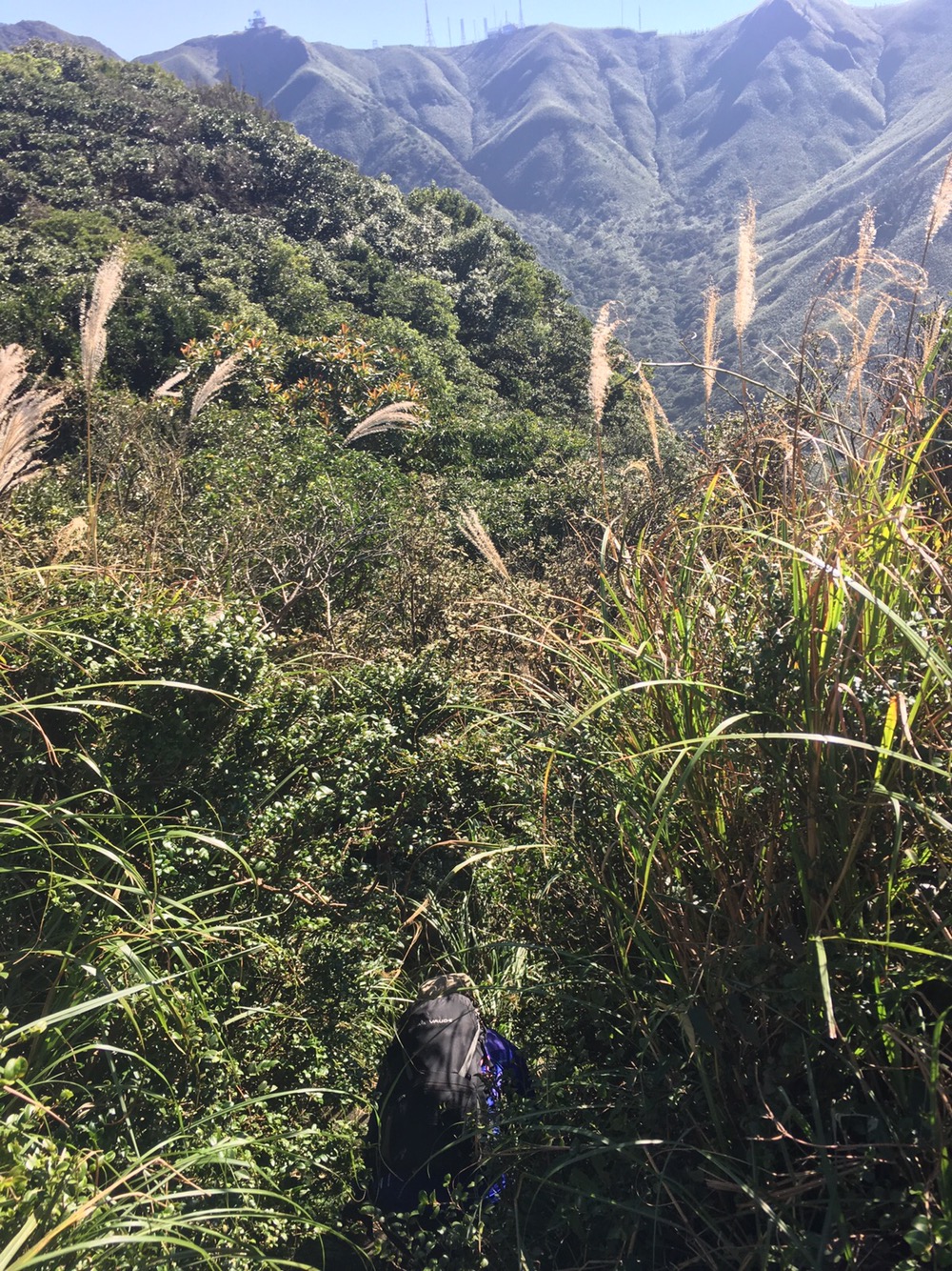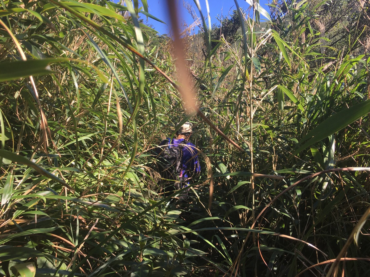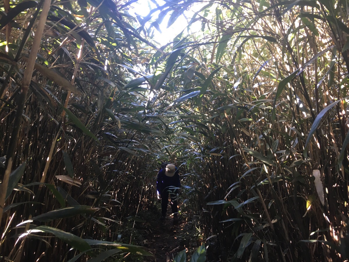 Since the peak was little more than a small clearing, we didn’t spend long there before heading on. From here until the start of the proper descent, grasses and bamboo are the main form of foliage, and since both are quick growing, the path here is rather overgrown.