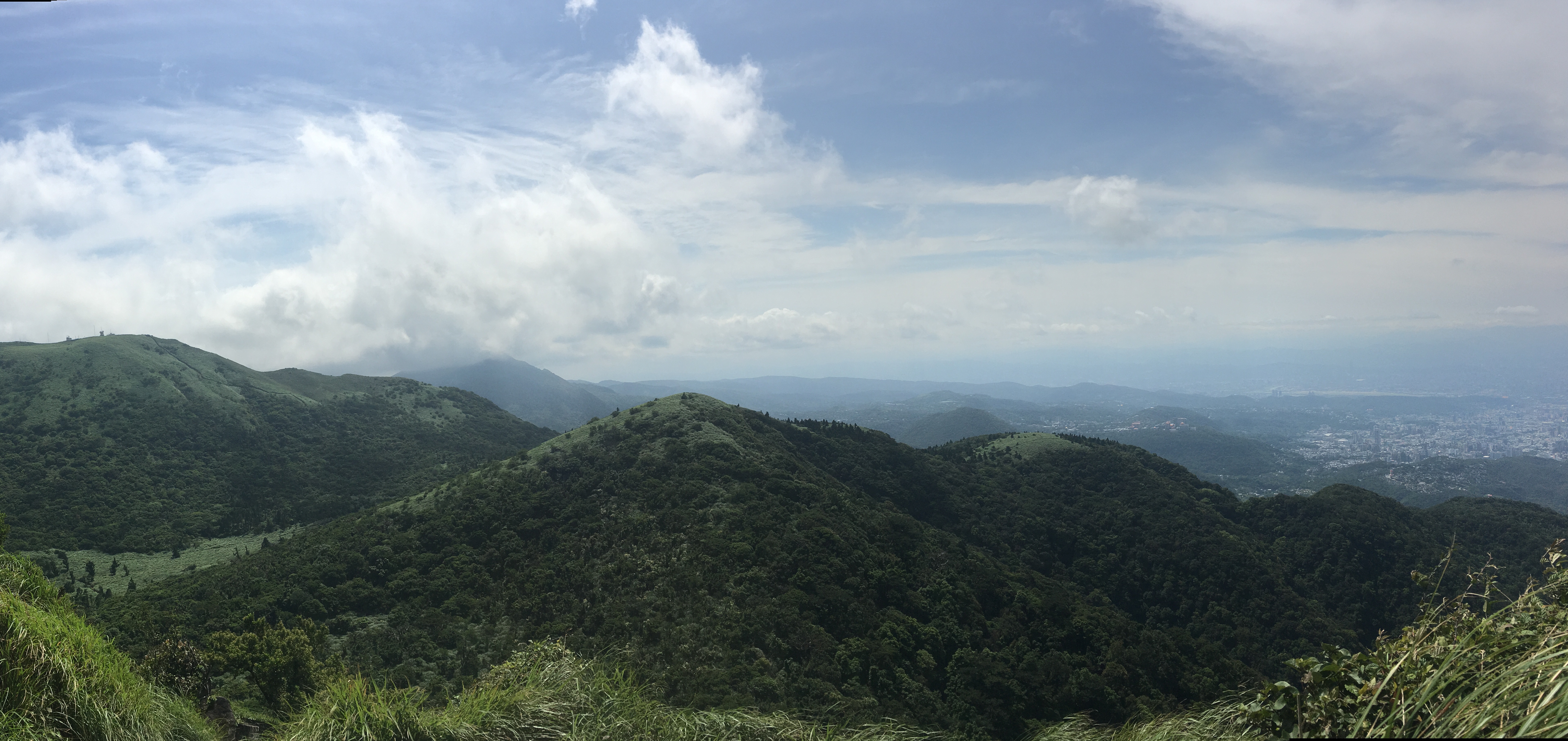 As the path changes from being tree-line to being flanked by grasses and bamboo, the climb starts to be rewarded with some views. The twin domes of Xiangtian Shan and Miantian Shan are to the west, and further away south of them you can see over Tamshui to Bali, the jaggedy spine of Guanyin Shan rising up on the far bank of the Tamshui River looks remarkably insignificant from this high up. An additional bonus on this occasion was that I could even see as far as the coast beyond Taoyuan.