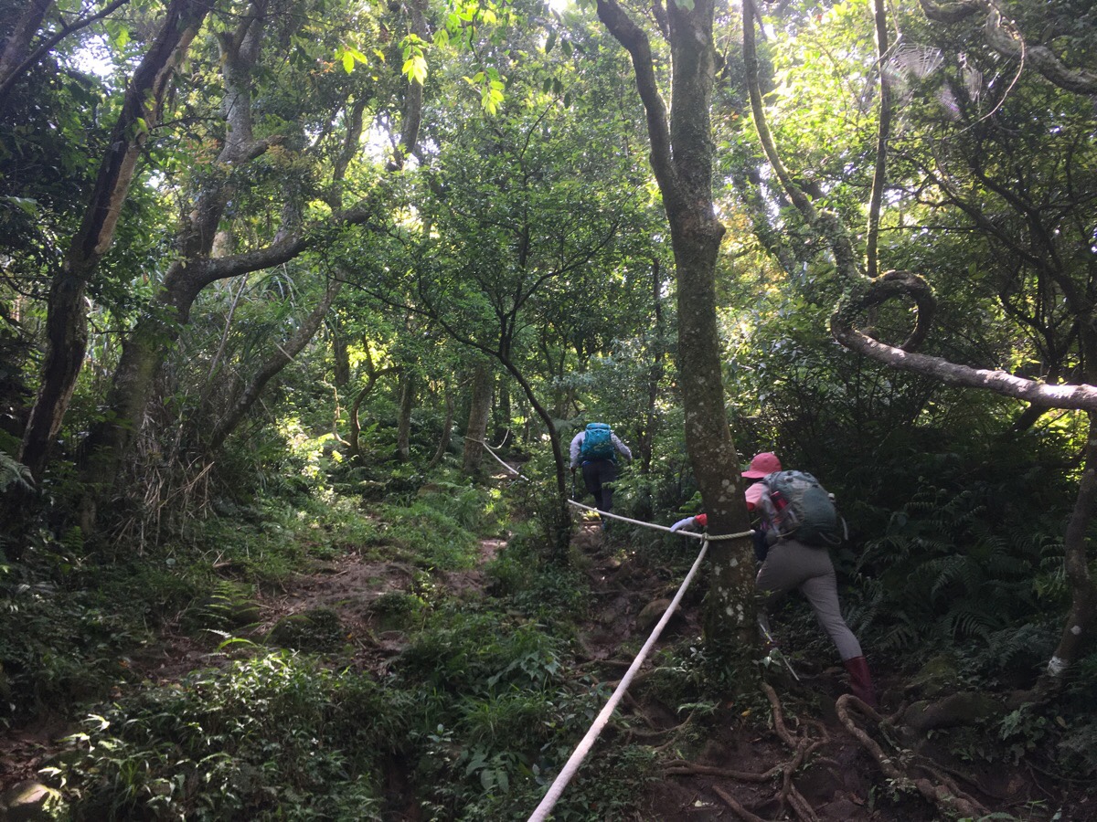 DIFFICULTY (REGULAR TAIWAN HIKERS): 5/10 – for length, altitude gain, steepness and a little confusion as to where the path actually goes. There are ropes and the path gets muddy in places, but it’s fun rather than difficult. This has been one of two sections that have left me sore the next day, (the other was the one which went over the Nangang range – but that only affected my legs).